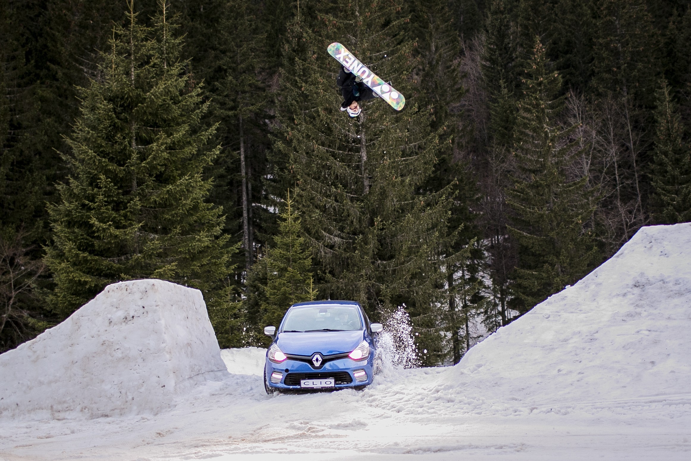 Tim-Kevin Ravnjak - freestyle snowboardista, dovršil 5. listopadu 18 let a při této příležitosti dostal ve správný čas ten správný dárek - rok bude dokazovat své schopnosti nejen na svém prkně, ale také s novým Renaultem Clio GT . Ve spolupráci se společností Renault Nissan Slovinsko vzniklo video, ve kterém si Tim-Kevin poprvé vyzkoušel jízdu na sněhu a na závěr zvedl své Clio devět metrů vysoko a skočil do hloubky s prknem z kufru .