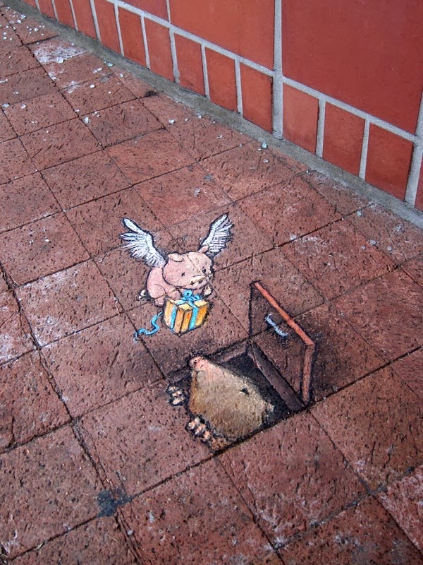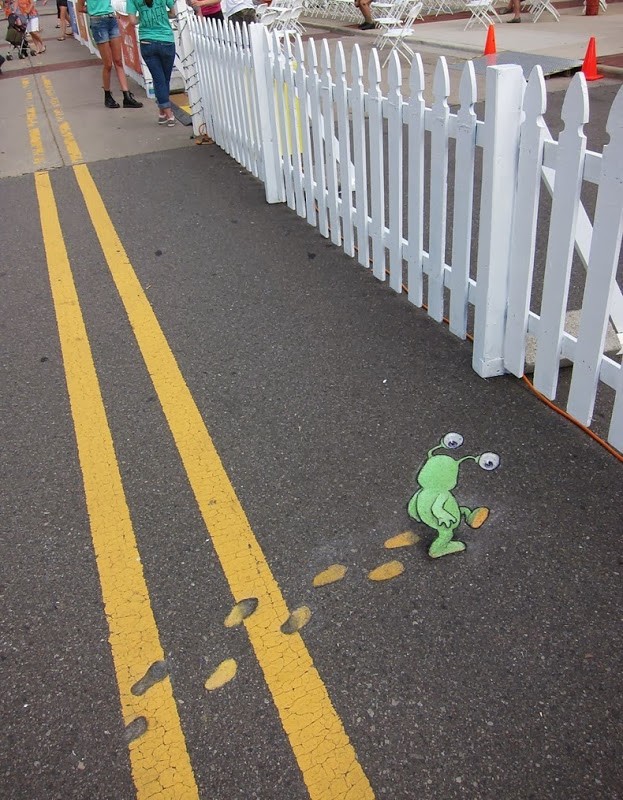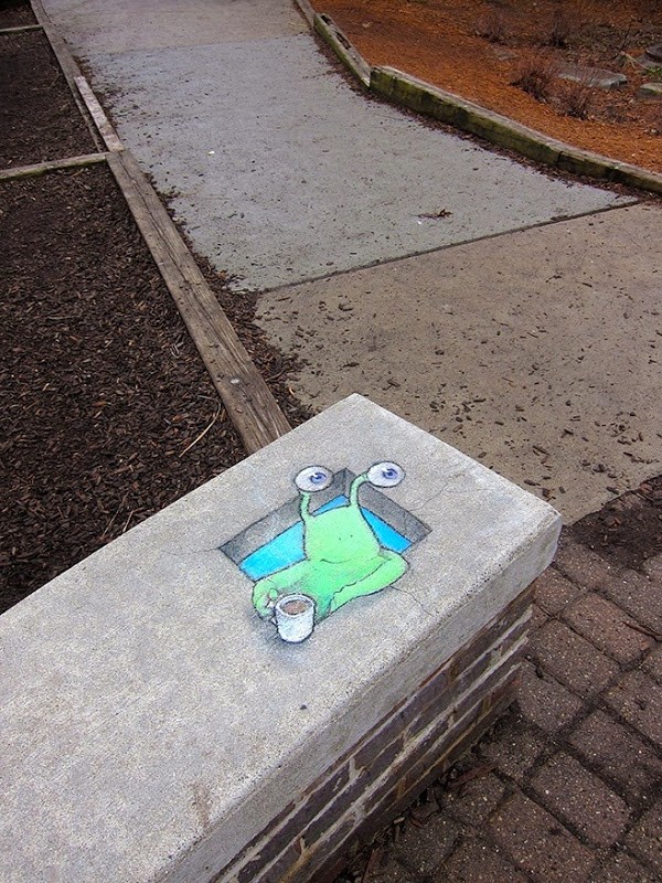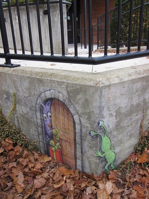 David Zinn místa pro vaše blízké křídové ilustrace vždy vybírejte velmi pečlivě, protože jsou velkou součástí celé kompozice. Jednou z jeho nejznámějších postav je Sluggo, podivné, zelené monstrum podobné mimozemšťanům. Své kreslené postavičky nechává působit jako živé, dává jim téměř trojrozměrný vzhled a vytváří kontakt s nimi a jejich okolím. Většina roztomilých kreseb se objevuje na chodnících v Ann Arbor v Michiganu, odkud Zinn pochází, ale některé se objevily i v ulicích Manhattanu v New Yorku.