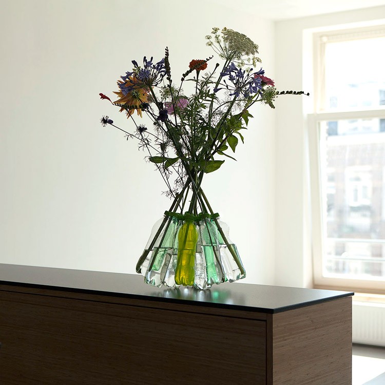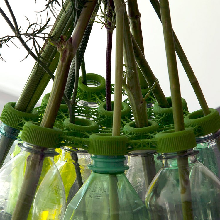 S pomocí 3D tiskárny, která dříve nebo později přijde do každé domácnosti, si můžete vyrobit plastovou síťku, na kterou potřebujete 12 podobných zátek. Výsledek je váza vyrobená z lahví. V internetovém obchodě jsou dostupné v černé a zelené barvě a cena za net je iracionálních 175 amerických dolarů.
