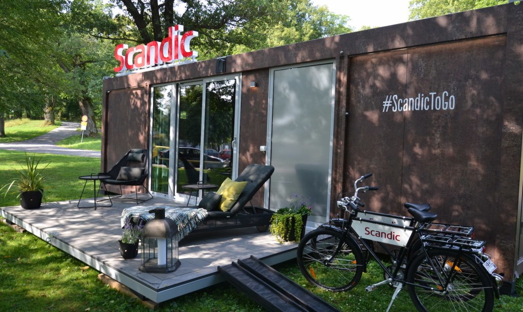Scandic to Go je"hotelový pokoj s sebou“ švédského hotelového řetězce Hotely Scandic. Tento celý Skandinávie nabízí ubytování v libovolné lokalitě. Zatím mají mobilní hotelové pokoje se již objevily na 40 místech a jsou dodávány všude tam, kde je možný přístup autem nebo lodí. 18 metrů čtverečních velká apartmá se mohou pochlubit dvěma lůžky, pohovkou, kterou lze rozložit na lůžko pro dva dospělé, vlastní koupelnou, toaletou, terasou a klimatizací. Je také k dispozici Wi-Fi.