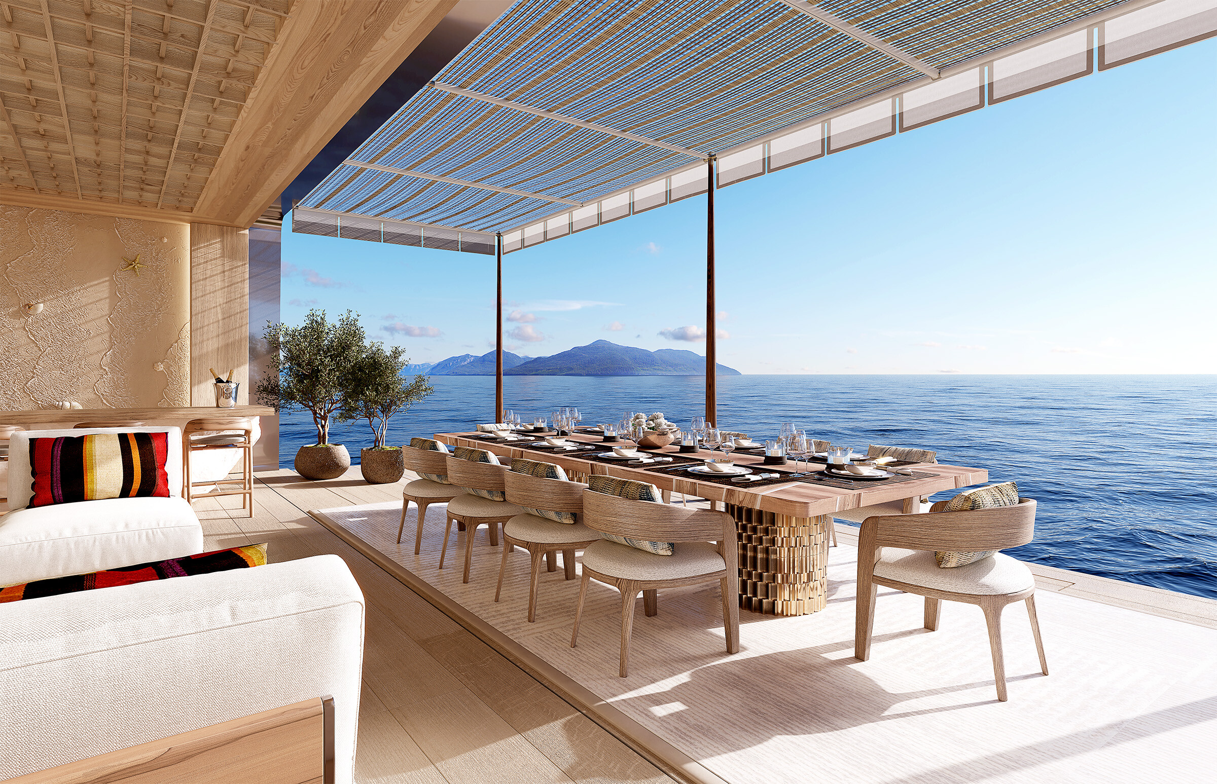Kouzlo se odehrává v plážovém klubu s 10metrovými stropy. Design AWARE je především o optimalizaci prostoru, což je skvělý způsob, jak říci, že je obrovský. Nejde ale jen o velikost; jde o to, aby se počítalo každý centimetr. Jachta slibuje výhled na oceán odkudkoli na palubě. Ano, i ze záchodu. Proč ne?