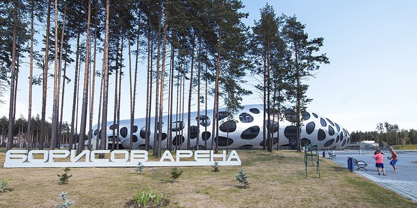 Ve slovenské kanceláři Kancelářské architekty, kterou vedou Rok Omán a Špela Videčnik, se může pochlubit nedávno dokončenou stavbou fotbalový stadion v běloruském městě Borisov. Otevření znamenalo významné výročí města a stadionem se měl stát vizuální symbol města. Při návrhu se architekti snažili přizpůsobit okolní krajině a co nejméně do ní zasahovat, zároveň se jim podařilo vyjít vstříc 13 000 míst, masivní veřejné prostory a četná parkoviště požadovaná UEFA. Okolí objektu je upraveno do příjemné promenády, parkoviště jsou umístěna v okolním lese.