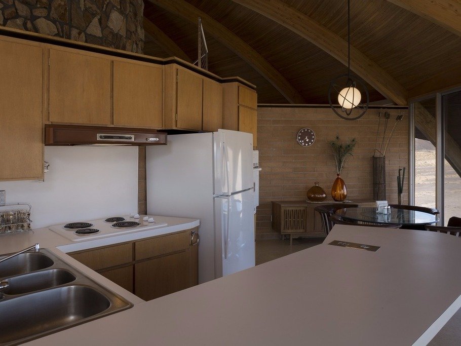 Jestli čerpal inspiraci z nějaké bondovky a záporáckého „generálního štábu“, to si netroufáme hádat, ale víme, že má dvě ložnice, tolik koupelen, vzdušný obývací pokoj, velká terasa, 360 stupňový pohled na poušť, (zastaralá) kuchyně a pokoj pro hosty, vše ve stylu amerického modernismu. Přímo na úpatí sopky stojí přístavba, poněkud strašidelný dvoupatrový dům, který je zároveň penzion a garáž. Taky to není daleko jezero, kterou získáte spolu s nemovitostí.