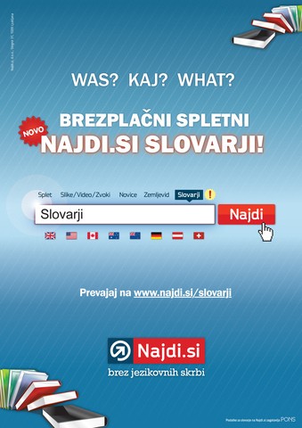 Z Najdi.si slovarji so brezplačni prevodi dosegljivi povsod in takoj, uporaba je enostavna in primerna za vse uporabnike. Najdi.si – odpravlja vse jezikovne skrbi.