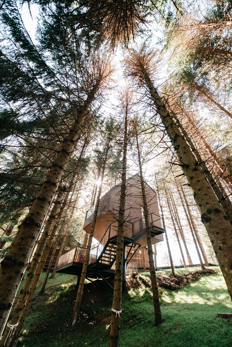 Pet posebej opremljenih lesenih hiš se razteza na treh nivojih, z dvema kopalnicama, dvema spalnicama, dnevno sobo in kuhinjo ter nudi udobno in razkošno nastanitev za štiri osebe. Na samem jezeru pa je devet manjših hiš z zakonskimi posteljami in kopalnico. Zasebnost zagotavljajo okoliška drevesa, ki v vročih dneh ponujajo tudi prijetno senco, vsekakor pa velja omeniti dejstvo, da so zaradi dobre izolacije in centralnega ogrevanja na voljo za najem skozi vse leto.