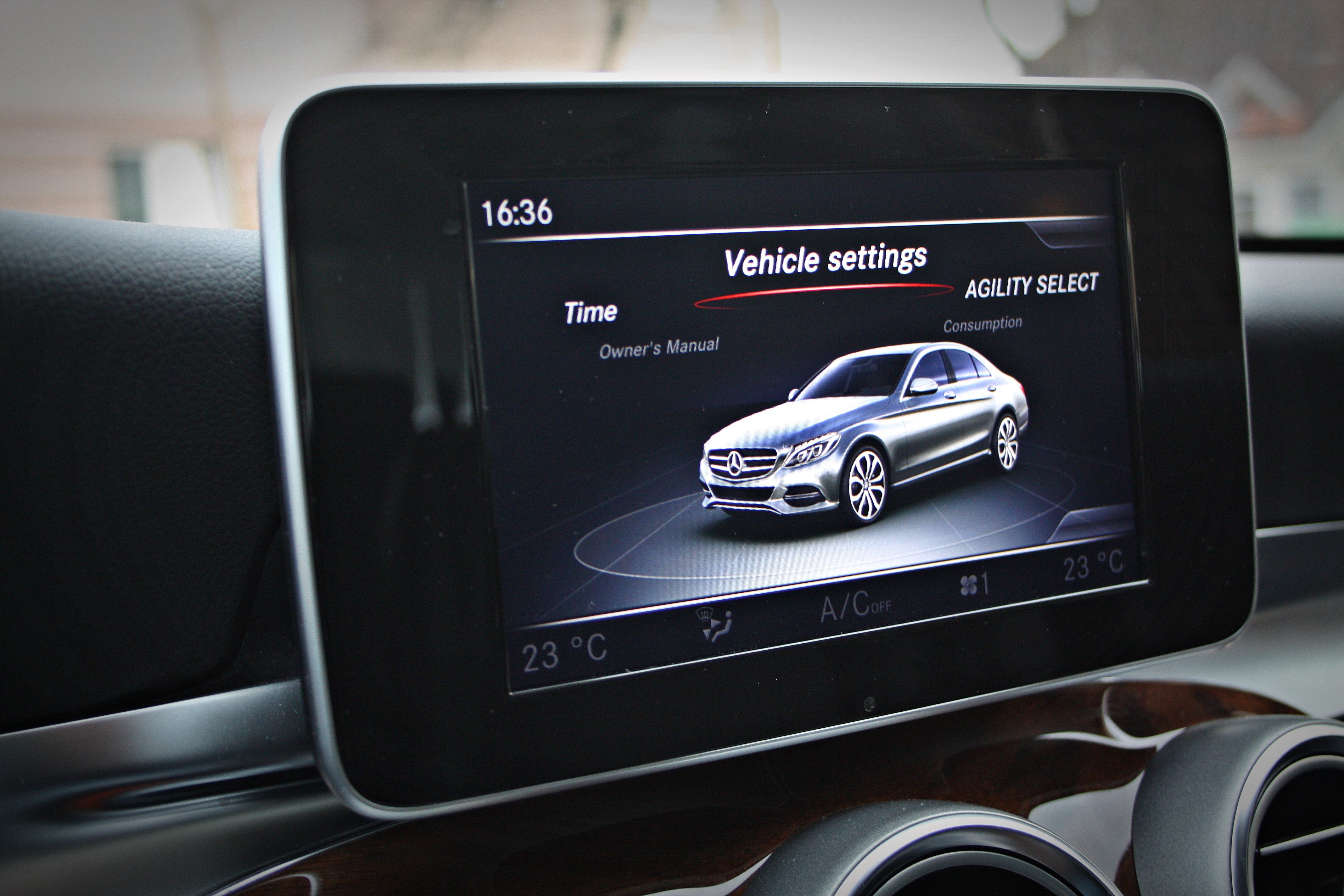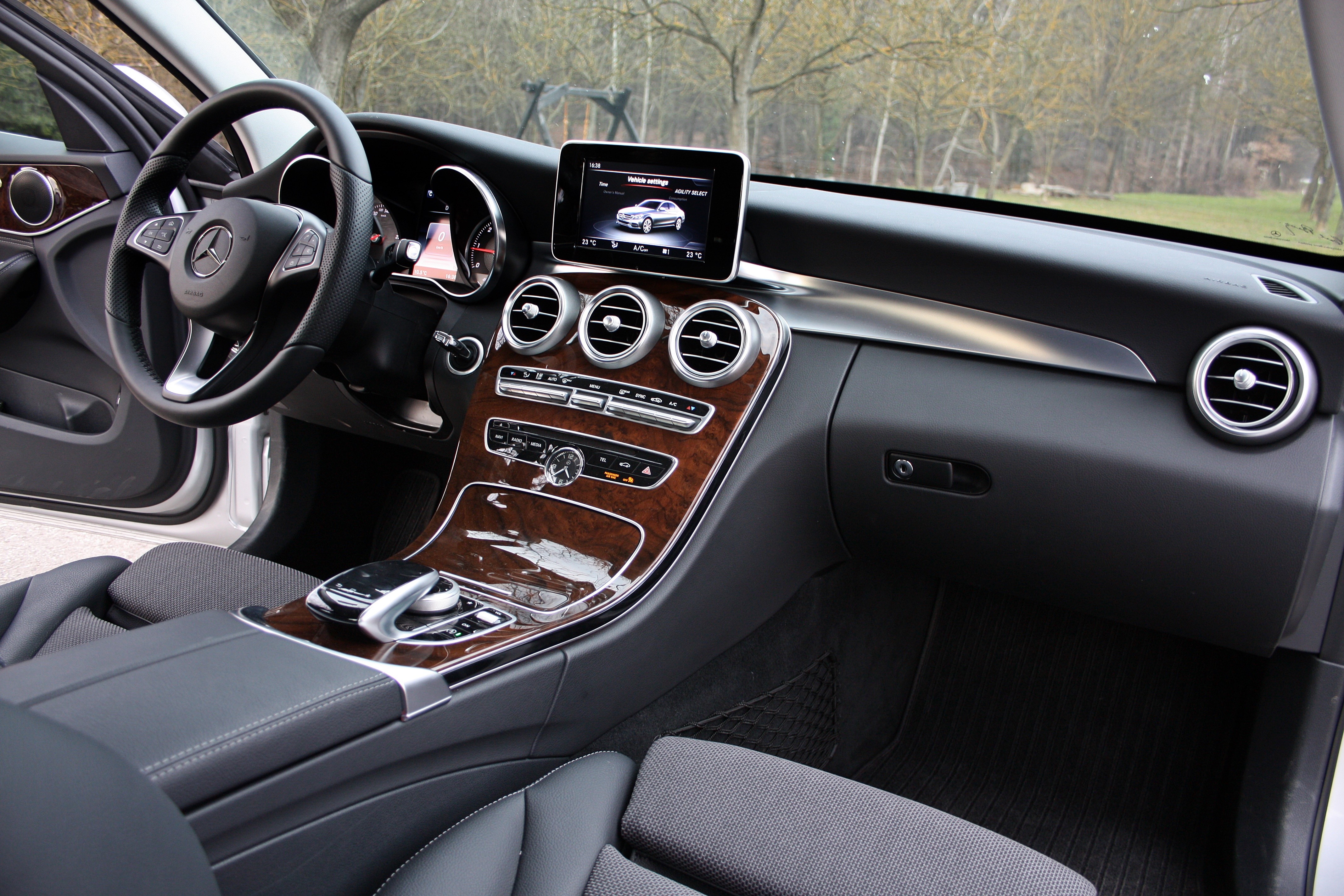 „Kabina cestujících nabízí mnoho krásných detailů jak na pohled, tak na dotek, pochválit je třeba filigránskou preciznost a smysl pro detail, kde bych vytknul úctyhodné uzavření krytých odkládacích ploch, vzhled chromových spínačů, které nefungují levně a ačkoli nejsem příznivcem imitace dřeva, tahle v C - vám sluší. Celý interiér působí nablýskaně a prestižně a zůstane tak i po letech používání. Drobnost narušuje jen velikost a vůbec rozložení centrální obrazovky, protože tento má velký lem a mohl by být větší. Konkurence, i ta levnější, to nabízí. Konečnou cenu bych nekomentoval, jelikož všechny modely v této cenové relaci jsou stejně drahé. Oh, právě jsem to (komentoval). Nech to zůstat, protože to drží."
