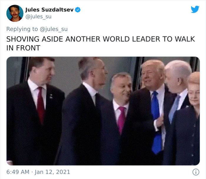Ne glede na to, kaj se bo v teh dneh dogajalo z ameriških predsednikom Donaldom Trumpom (kakšen bo rezultat ustavne obtožbe), se njegov čas na položaju izteka. Da bi povzel njegov mandat, je Jules Suzdaltsev na Twitterju povabil ljudi, naj si vzamejo trenutek, da se spomnijo nekaterih “najbolj čudnih in neumnih” stvari, ki jih je Trump storil v svojem mandatu. Od metanja papirnatih brisač v množico po uničujočem orkanu do salutiranja severnokorejskemu general: Suzdaltsev je sestavil izpopolnjen seznam “dosežkov”.