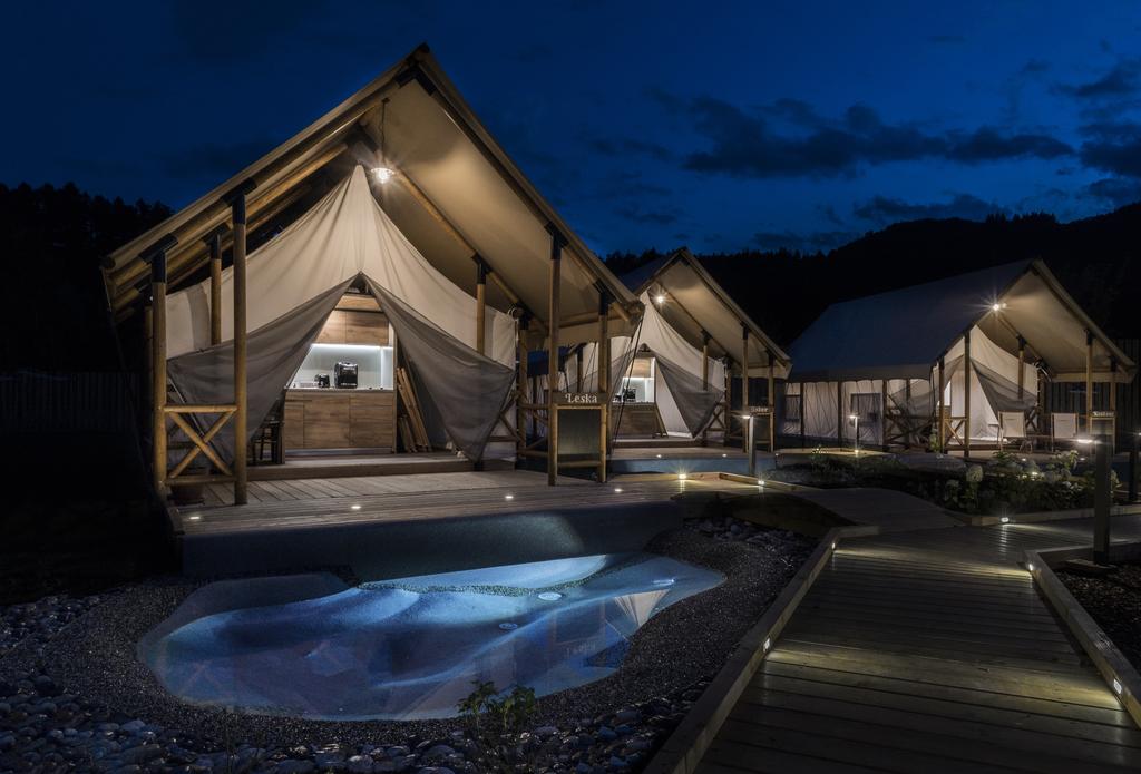 Vesnice Glamping Olimia Adria je malá glampingová vesnice, skutečný ráj pro rodiny, dobrodruhy nebo romantiky. V kontaktu s přírodou budete bydlet luxusně, stylově dokončený a plně vybavený stany dvou velikostí. Můžete strávit den v jednom z termálních bazénů Terme Olimia nebo stisknout tlačítko a líně se ponořit do bublin soukromá jacuzzi před stanem. Případně můžete cvičit zdatnost, a jsou určeny pro nejmenší dětské hřiště a výše zmíněný vodní park.