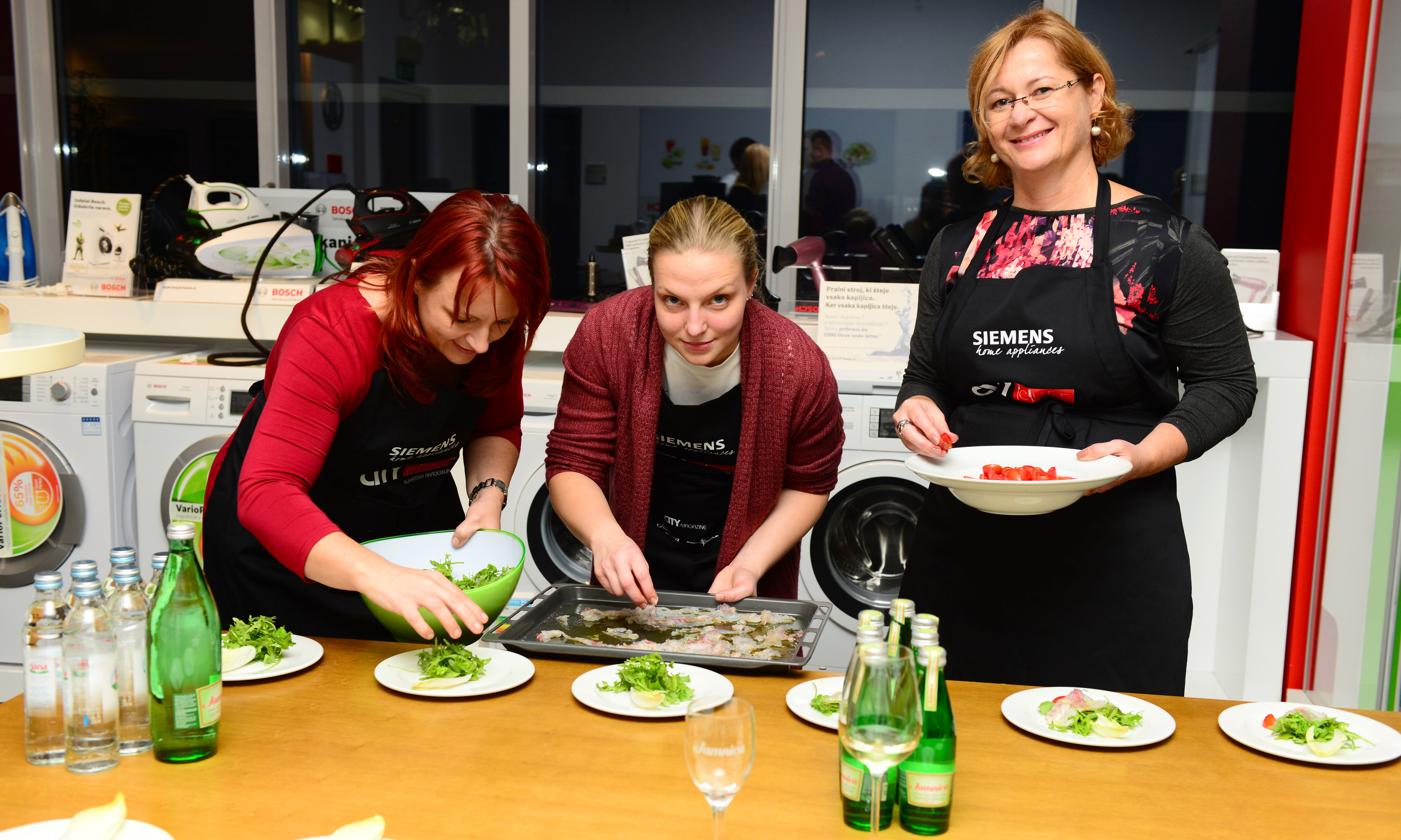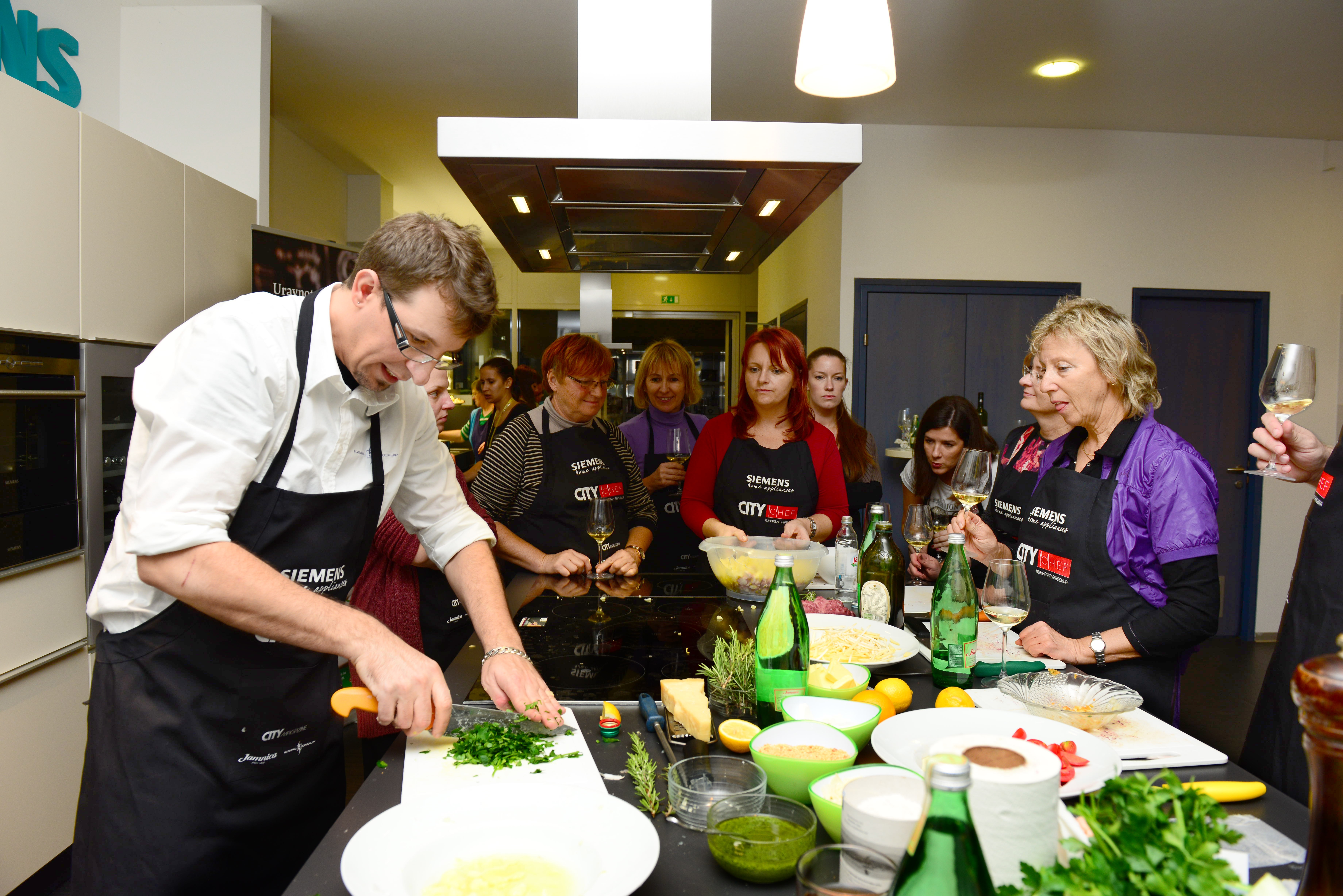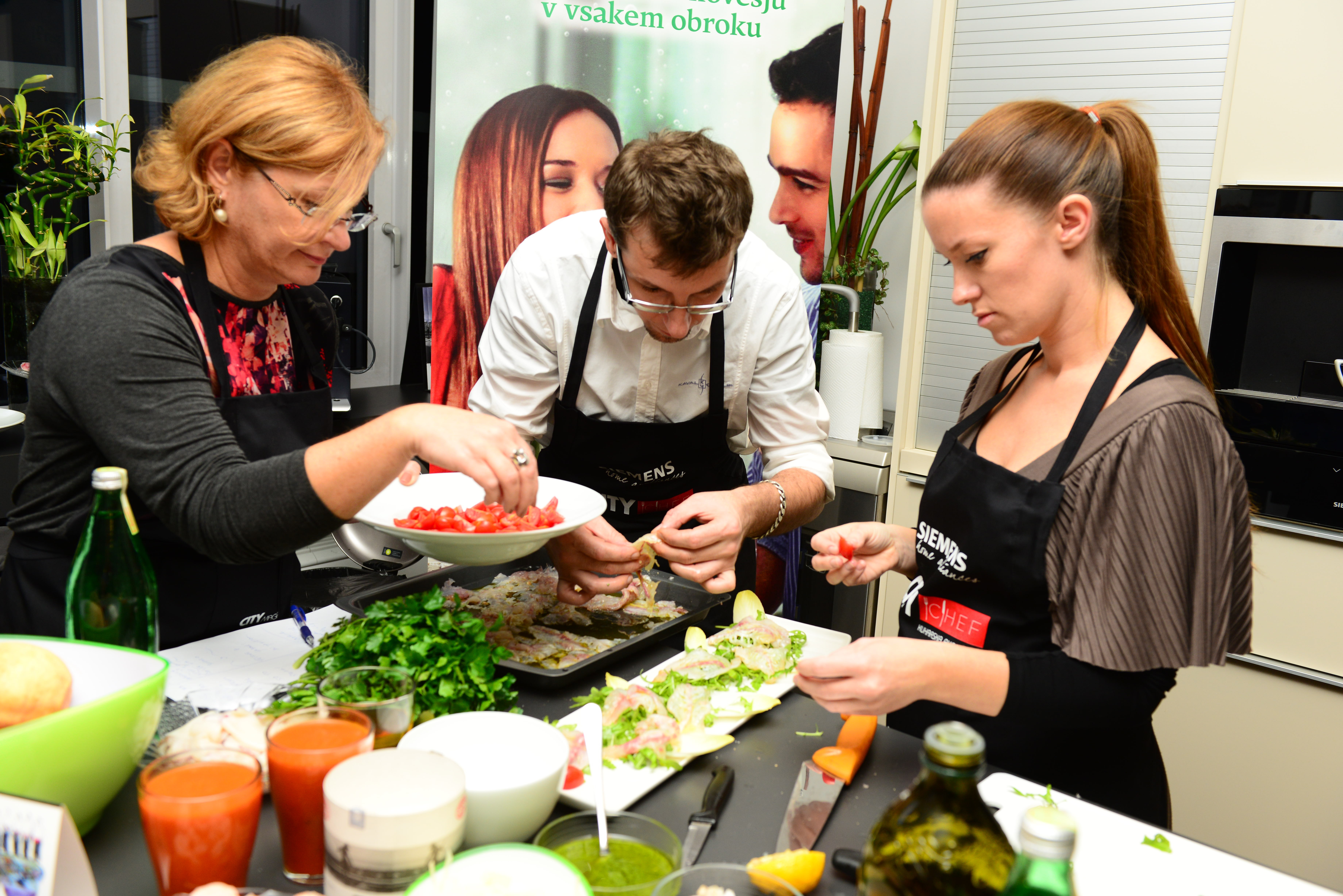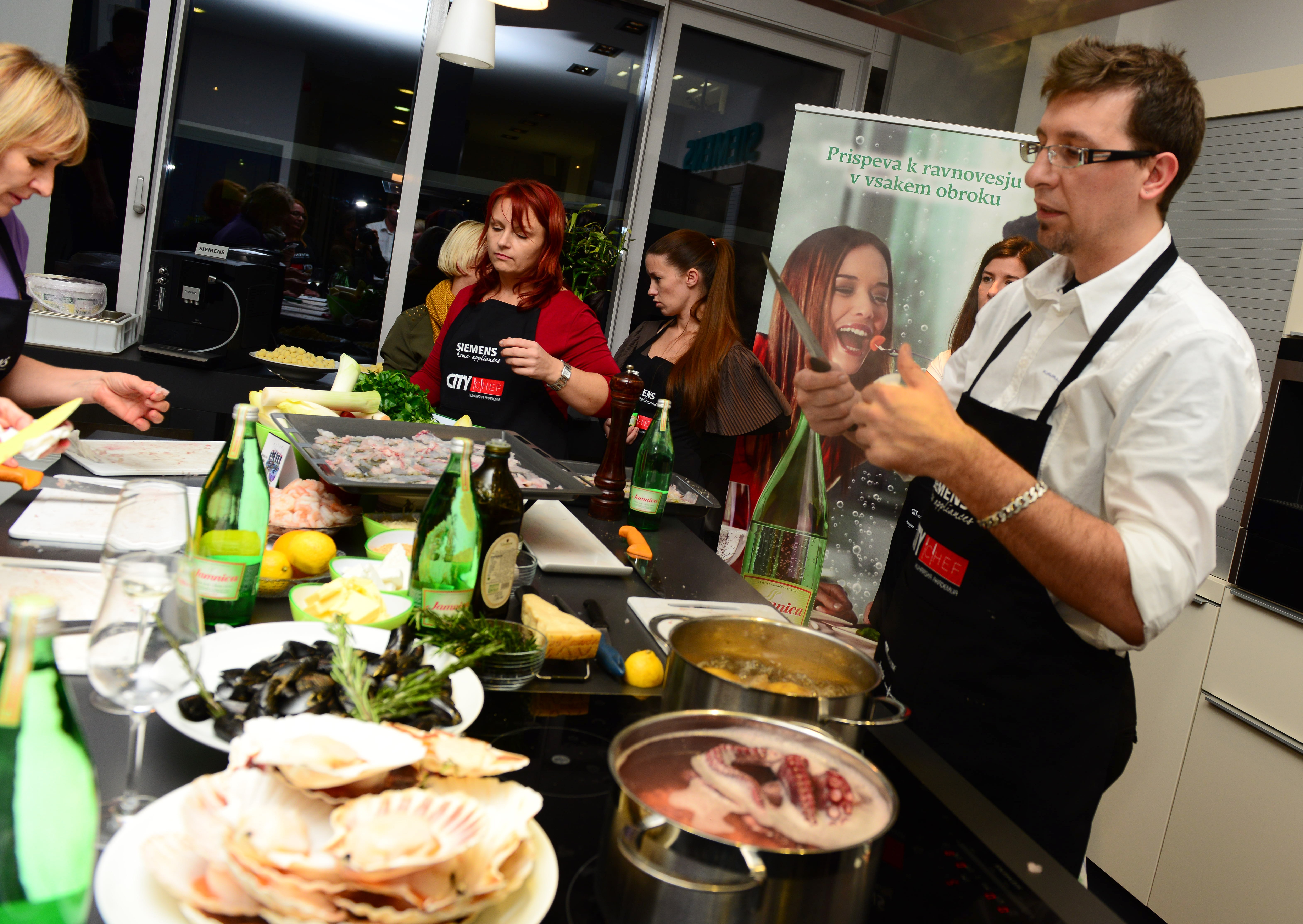 V dobri družbi ob hrani in izbranih vinih smo tokrat na Akademie vaření CITY CHEF pripravljali dalmatinske kulinarične dobrote – brancinov carpaccio, mešano buzaro, gratinirane kapesante s kolerabo, fritule s pomarančnim in limoninim sokom ter naribanimi jabolkami … Predstavila pa sta se tudi vinarja: Korta Katarina a Kabola. Uradna voda akademije je bila Jáma.