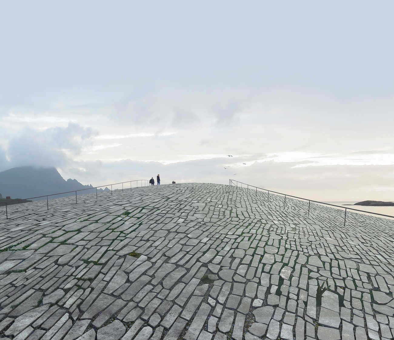 Leží severně od polárního kruhu norský ostrov Andøya, a na něm město Andenes. Tato oblast je známá k velké populaci velryb, kteří migrují, což z něj činí nejlepší místo pro pozorování těchto mořských savců. Na Dorty Mandrup tak tu atrakci navrhli Velryba. Tenhle bude stát na skalnatém pobřeží Andenes a jeho střecha to bude připomínat na zádech obří velryby, propojí pobřeží a moře.