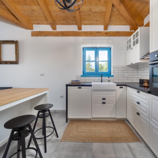 V notranjosti vlada harmonija beline in lesa, vse pa je premišljeno do zadnjega detajla. Vsaka spalnica se ponaša s svojim karakterjem, bivalni prostor je dovolj prostoren, četudi vam jo zagode vreme. V vili lahko udobno biva do 8 oseb, na voljo je tudi prostorna zelenica za športne aktivnosti in igro, pred hišo pa je dovolj prostora za do tri avtomobile.