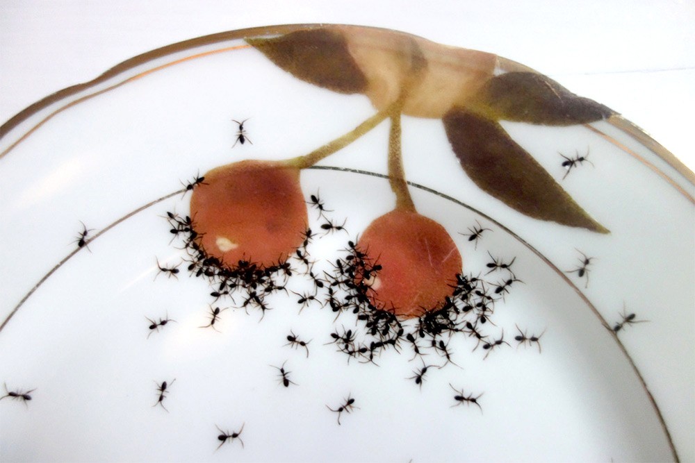 Německá umělkyně Evelyn Bracklow vytvořila zábavnou kolekci porcelánového vintage nádobí, po kterém lezou mravenci.