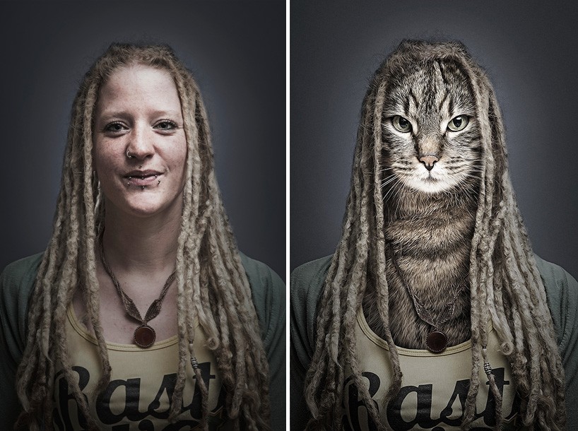 Švicarski fotograf Sebastian Magnani je obraze lastnikov na fotografijah zamenjal za gobčke njihovih domačih ljubljenk. Zbirka fotografij predstavlja fotografije prej-potem, na katerih lahko vidimo mačje lastnike v primerjavi z njihovimi kosmatimi ljubljenkami v človeški preobleki.