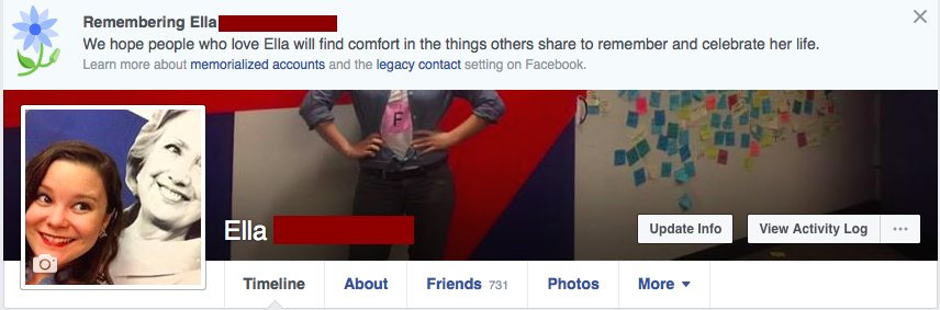 Če ste se spraševali, kaj se zgodi z našim profilom, ko umremo, ste zdaj dobili odgovor. Facebookov profil po smrti uporabnika sam od sebe ne umre, ampak živi svoje življenje. Če bi Valentin Vodnik živel v 21. stoletju, bi se mu tako namesto ”Ne hčere ne sina po meni ne bo, dovolj je spomina: me pesmi pojó” zapisalo ”Ne hčere ne sina po meni ne bo, dovolj je spomina: me prijatelji na Facebooku pojó.” Če želimo, da naš Facebookov profil umre skupaj z nami, morajo za to poskrbeti pokojnikova družina ali prijatelji, in sicer prek namenskega obrazca (Prijava profila preminule osebe).
