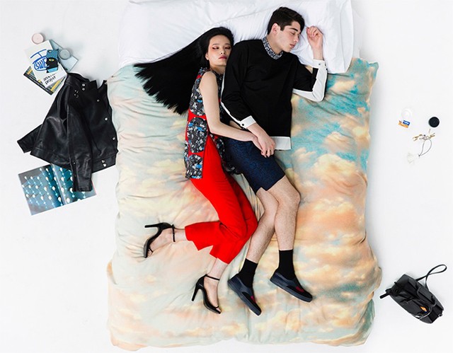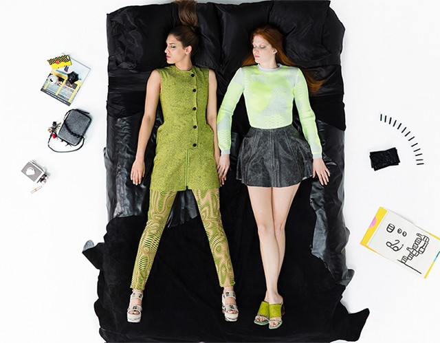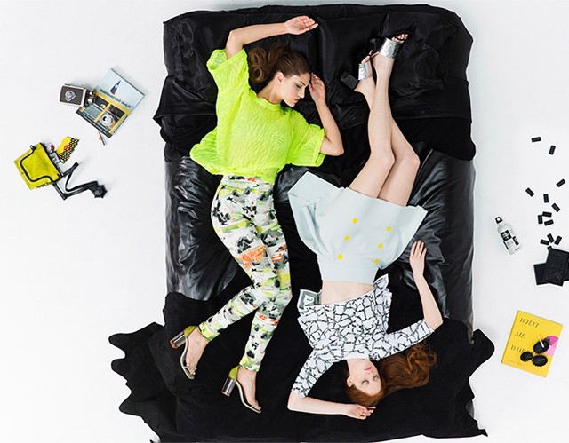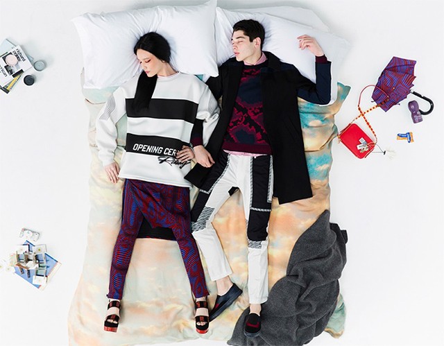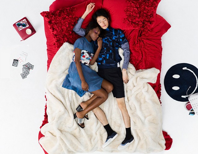 Americká značka Opening Ceremony, kterou v roce 2002 založili přátelé Carol Lim a Humberto Leon, představila letní lookbook. Kampaň s názvem Crash ukazuje dívky a chlapce spící na posteli. Oblečeni do denních a nočních kombinací, ale především do barevných, hlasitých stylizací, které demonstrují estetiku Slavnostního zahájení: trička, košilové šaty, sukně s vysokým pasem, záplava potisků a barev, které se jen tak rozlévají po posteli.