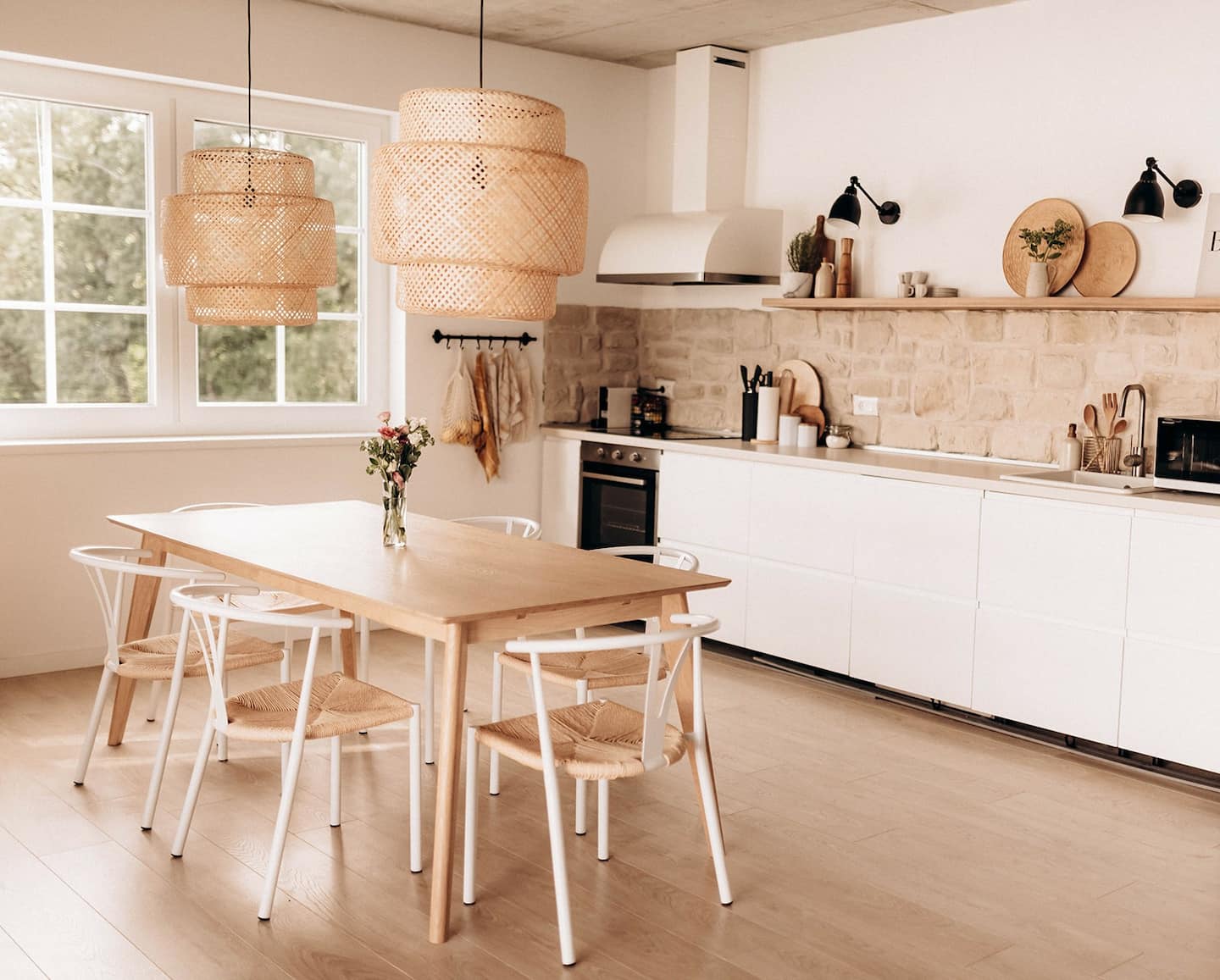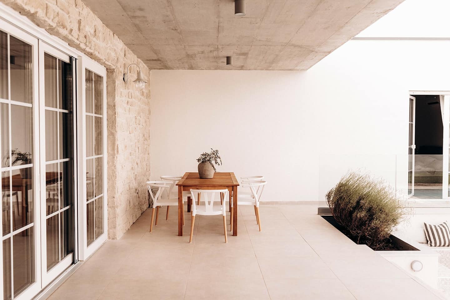 Interjer je premišljen do zadnjega detajla, vse od ratanovih svetil v jedilnici do posebnih dodatkov v spalnici. Prevladujejo svetli toni, ki se vklapljajo v moderne pohištvene kose, kar še poudari prostornost in naravno svetlobo hišice. Kuharski navdušenci se bodo razveselili dobro opremljene kuhinje, hedonisti pa bodo navdušeni nad zunanjo teraso z bazenom in žarom.