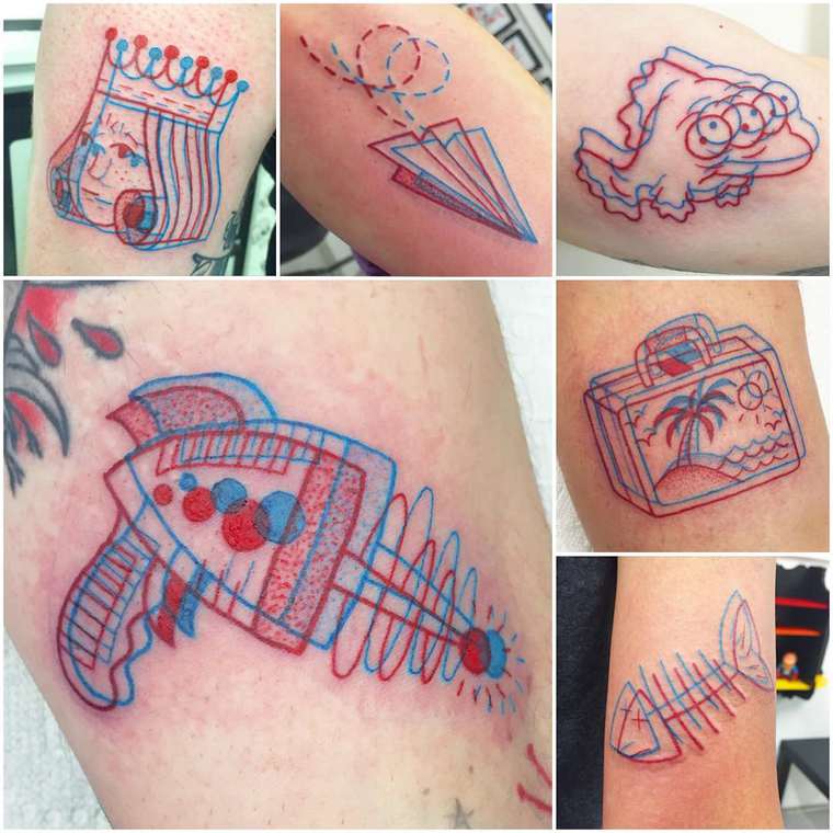 Røde og blå tatoveringer, som bogstaveligt talt skiller sig ud, er værker af en amerikansk tatovør fra Portland med øgenavnet Winston HvalenHan bruger det til sine tatoveringer anaglyfmetode, så den kombinerer offset blå og røde striber. Men tatoveringer skiller sig ikke ud på grund af det, de skiller sig ud (og bogstaveligt talt) kun, når du tager en særlig 3D-brillerDer ligger sikkert et par papkasser og ruller rundt i en skuffe et sted. Bare gå hen og hent dem, så du kan bruge dem. 3D-tatoveringer udsigt i al deres pragt.