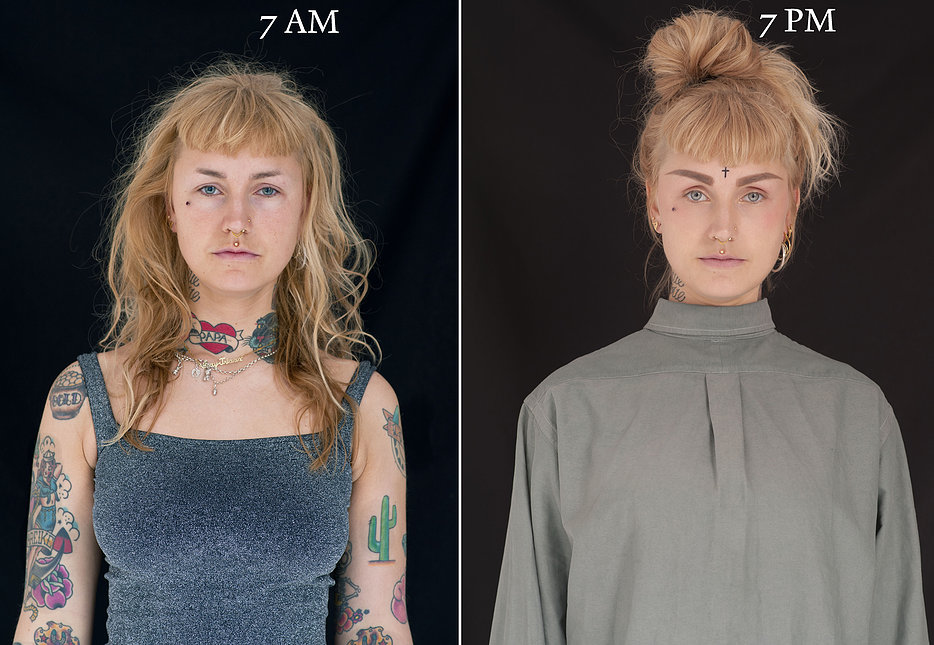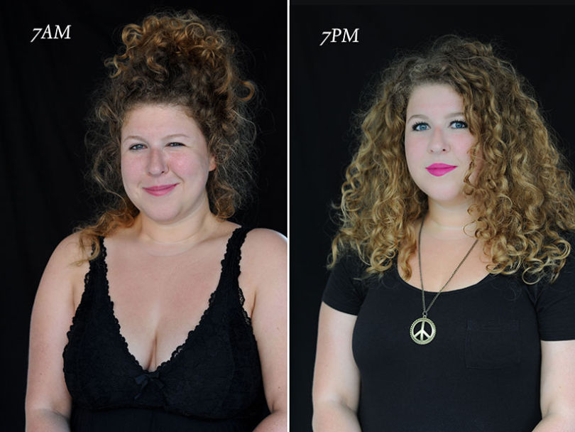 Morgen og aften vi mennesker er en helt anden person, i hvert fald hvad angår udseendet. Dette emne tiltrak den belgiske fotograf Barbara Iweins, som er på eksemplet med portrætter (serie 07.00-19.00) viste utroligt stiltransformation i løbet af dagen, som vi ikke engang er klar over. Mine portrætter hun fangede syv om morgenen og syv om aftenen.