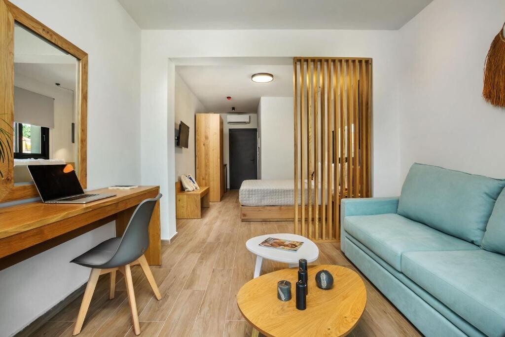 De mange forskellige værelsestyper kan rumme alle typer grupper, fra par på udkig efter en romantisk ferie, en gruppe venner, der nyder de forskellige aktiviteter, området har at byde på, til en familieferie klar til at skabe minder, der vil vare evigt. Start din dag med en forfriskende dukkert i poolen, før du nyder havet, som byder på en spektakulær udsigt over Olympen. Beliggenheden giver gæsterne nem adgang til centrum af Skala Fourka, samt de nærliggende områder Poseidi, Siviri og Elani, hvor du kan opleve taverner, barer og caféer samt et livligt natteliv.
