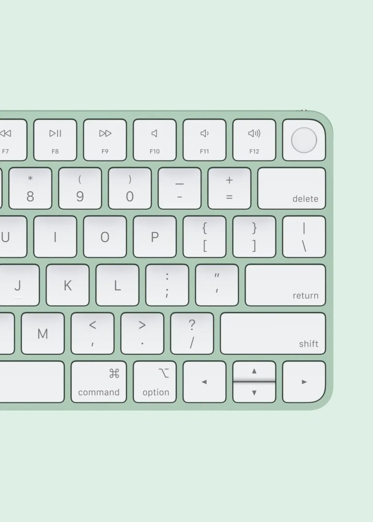Udover computeren Æble den tilbyder også opdateret tilbehør – Magic Mouse, Magic Keyboard og Magic Trackpad, som nu inkluderer USB-C-porte til opladning. Dette er ikke kun et skridt hen imod ensartede stik, men også et skridt i retning af at forenkle strømforsyningen til alle Apple-enheder i fremtiden. Dette tilbehør er naturligvis tilpasset i samme farvenuancer som iMac, hvilket betyder, at skrivebordet forbliver æstetisk koordineret.