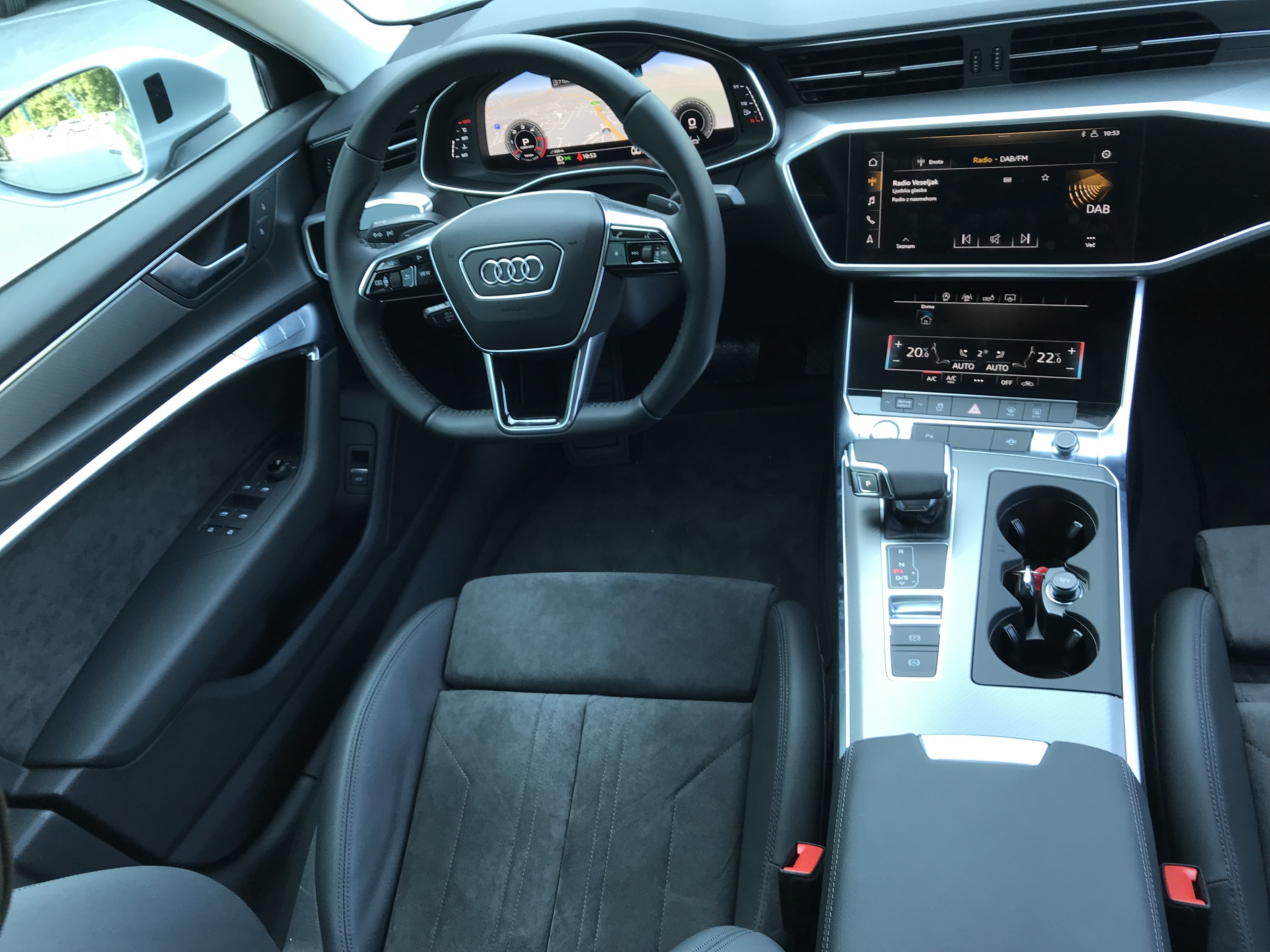 Mere novega Audija A6 so v primerjavi s predhodnikom nekoliko zrasle, a se to še najbolj opazi v potniški kabini. Več je prostora za glave, ramena in komolce, ob tem pa se nam ni treba odpovedati prtljažnemu prostoru, saj je ta enak kot pri predhodniku in ima za 530 liter prostornine. Notranjost je popolnoma digitalizirana in je sestavljena iz digitalnega zaslona pred voznikom, višje na osrednji konzoli najdemo 8,8- eller 10,1 tommer zaslon informacijsko-zabavnega sistema. Pod njim je 8,6-palčni zaslon, prek katerega upravljamo z nastavitvami klimatske naprave.