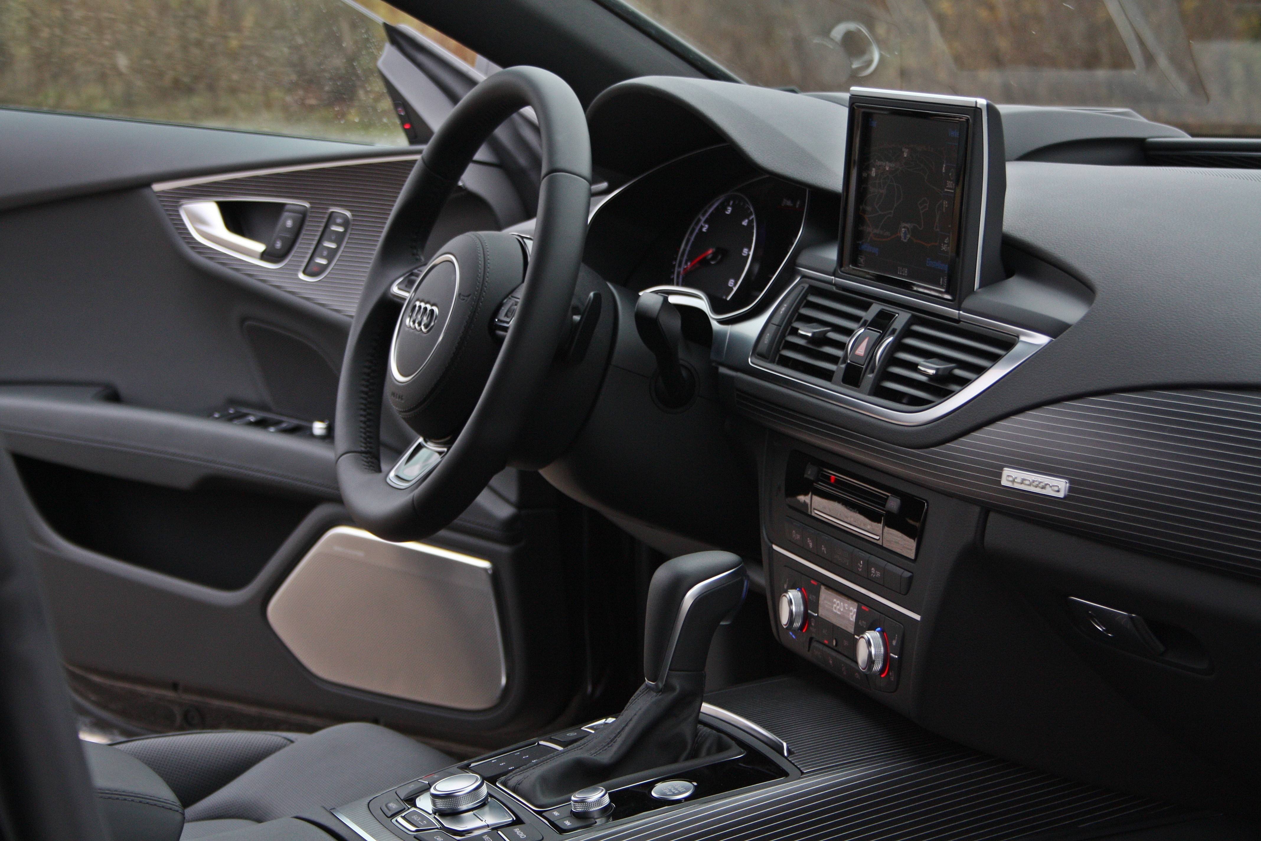 Podobno je tudi v notranjosti kjer se zgodba udobja piše s še večjim U, drugačne so določene konture armaturne plošče in barvne kombinacije, največ novosti pa je pri opremi in sicer tehnične narave. Med slednjimi velja omeniti novo generacijo system start&stop, ki motor ustavi že pred popolno zaustavitvijo vozila, izboljšan je tudi sistem ACC s funkcijo ustavi-spelji, sistema line in side assist, parkirni sistem 360 in audijev phone box.