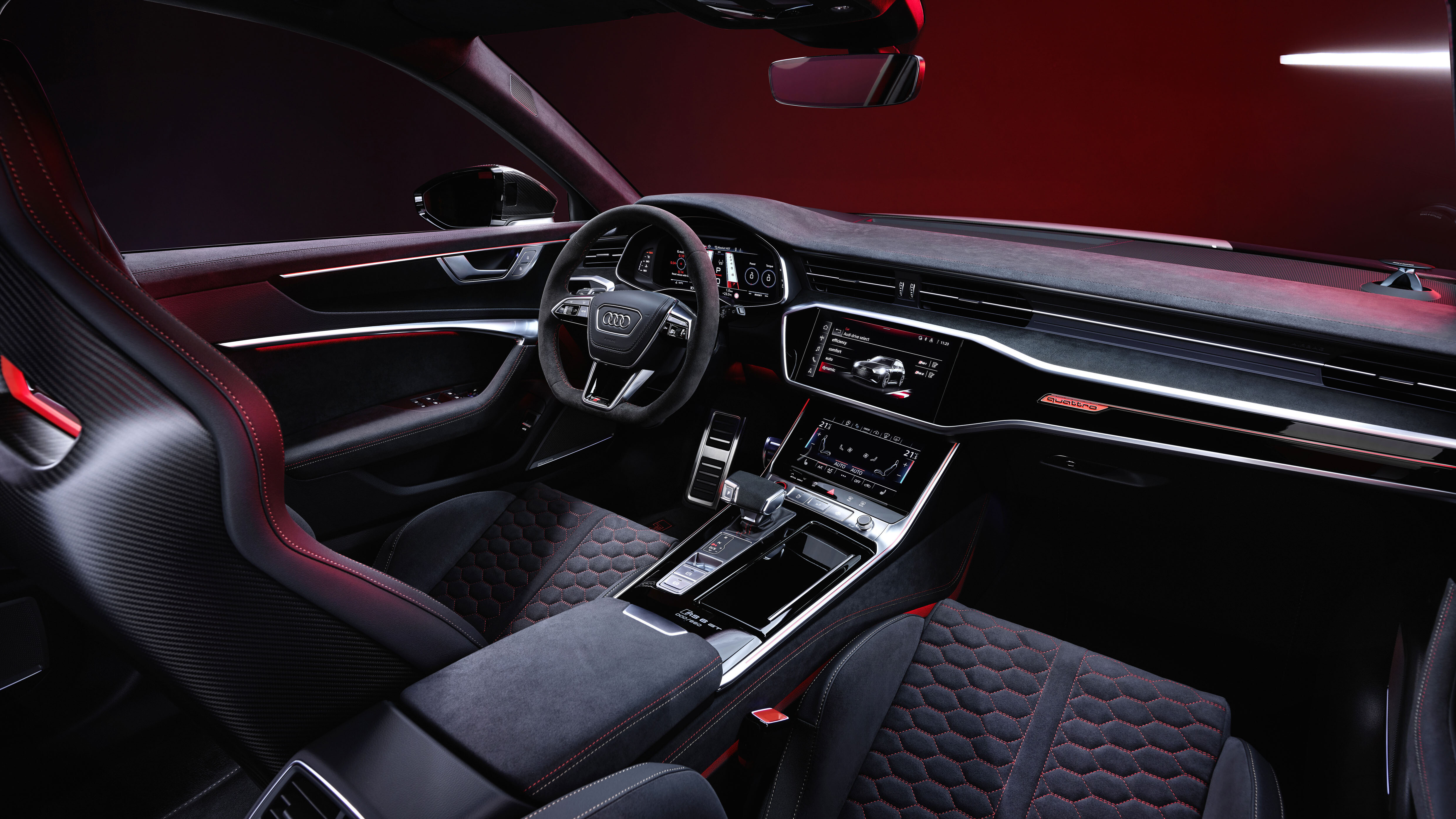 Interiøret er klædt i sort læder og Alcantara med rødt betræk på sæderne. Nye sportssæder med carbonryg og limited edition badges på midterkonsollen understreger denne vogns eksklusivitet. Audi planer produktion af kun 660 eksemplarer af RS6 GT på verdensplan, heraf kun 85 enheder kommer til USA og kun 7 til Canada.