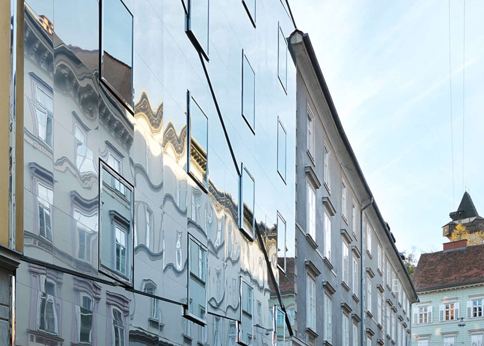 Det historiske centrum af Graz betragtes som et af de bedst bevarede bycentre i Centraleuropa, og i 1999 inkluderede UNESCO det på listen over verdens kulturarv. Det er kendetegnet ved en blanding af huse fra forskellige perioder og forskellige arkitektoniske stilarter. Den gamle bymidte består af mere end 100 bygninger, med stilarter lige fra gotisk til modernisme. Sidstnævnte blev også brugt af HoG Architektur (Hope of Glory) i opførelsen af en af de "stubbe", hvor boligbygningen blev bygget. I stedet for den klassiske facade fik Ballhausgasse-bygningen spejle, der reflekterer den nærliggende bygning, hvilket med succes maskerede det sande udseende bygninger.