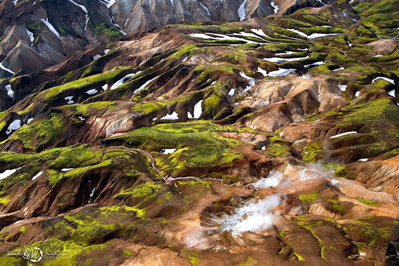 Island er nogle steder så ujordisk, at de endda øvede sig i at lande på månen. Det er, som om hun blev plukket fra en anden planet og syet til Jorden. Gejsere, varme kilder, vulkaner og gletsjere er et populært mål, især for fotografer, som fotografen Sarah Mertinet lærte på en nylig tur, som erobrede ildens og isens land fra luften.
