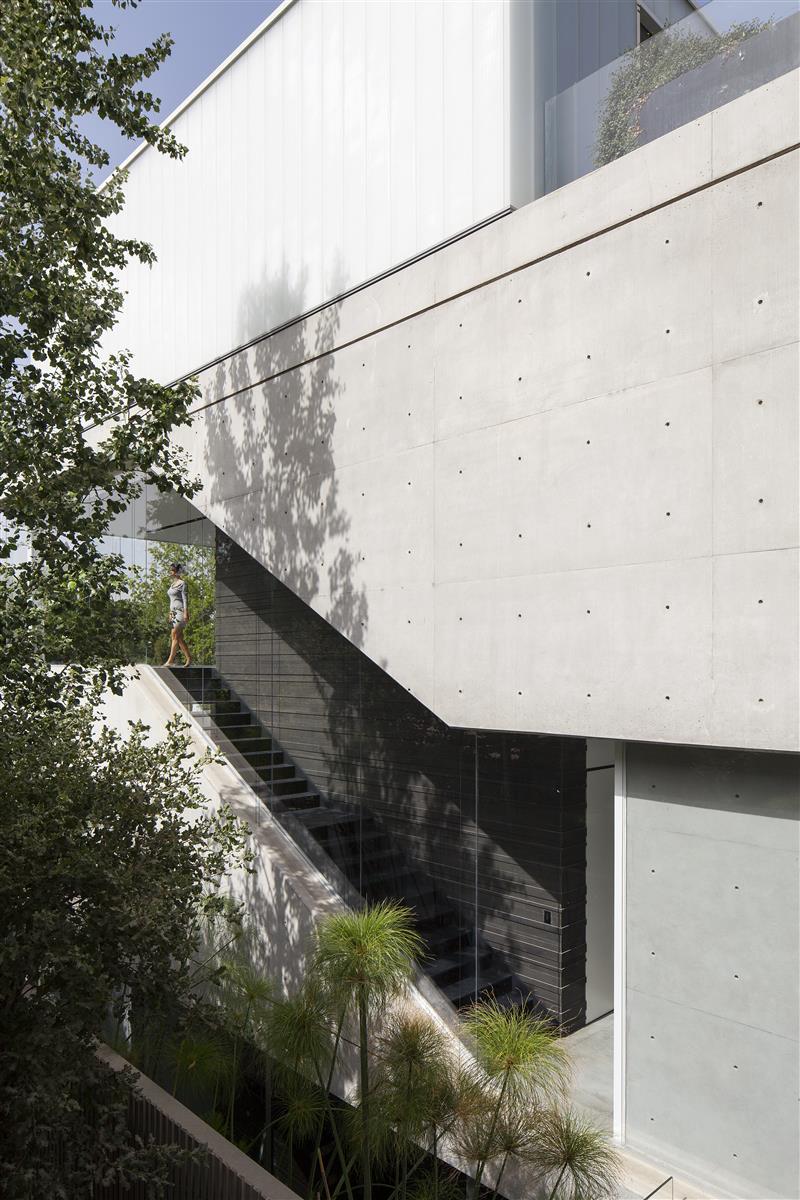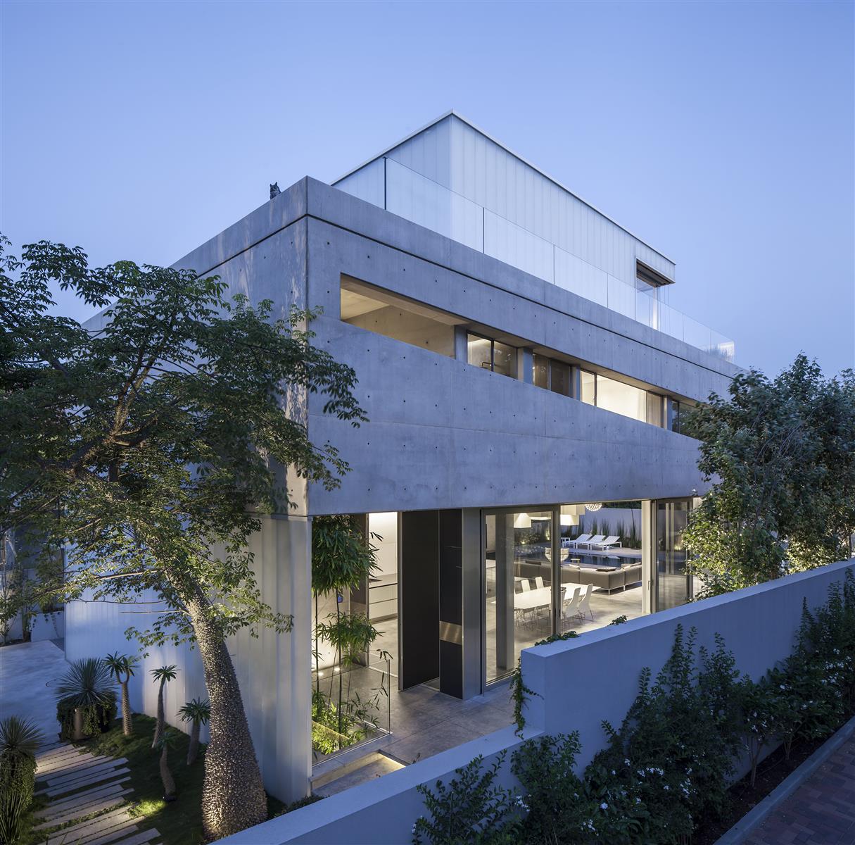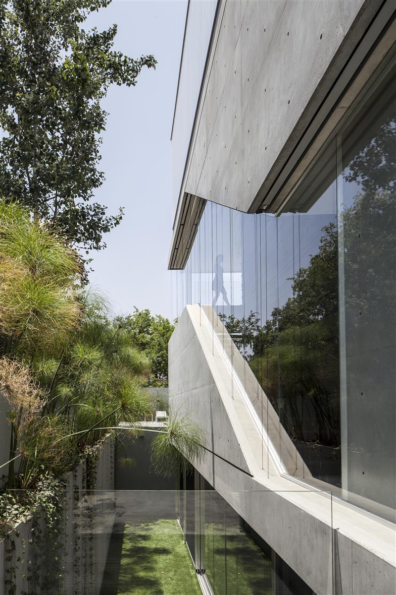 Betonskåret hus, som voksede i Israel, er familiehus badet i dagslys, som ser ud til at være skåret ud af en betonmonolit. Designet er signeret af en tegnestue Pitsou Kedem arkitekt, og han tegnede en bygning med en facade, der dominerer den glas dekoreret med betonslyngninger på sydsiden af bygningen (de snor sig mod toppen og skriver bogstavet s).