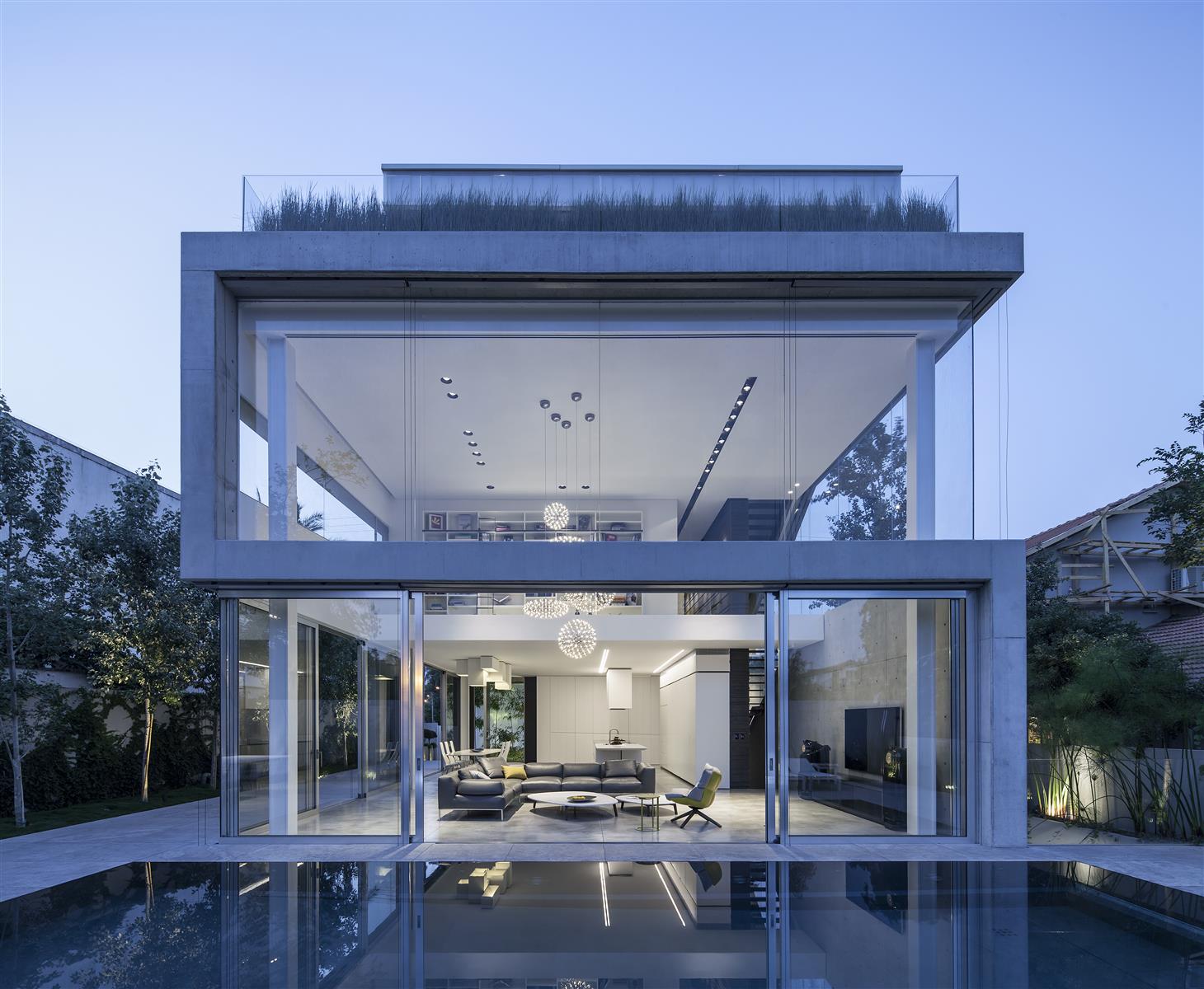 Betonskåret hus, som voksede i Israel, er familiehus badet i dagslys, som ser ud til at være skåret ud af en betonmonolit. Designet er signeret af en tegnestue Pitsou Kedem arkitekt, og han tegnede en bygning med en facade, der dominerer den glas dekoreret med betonslyngninger på sydsiden af bygningen (de snor sig mod toppen og skriver bogstavet s).