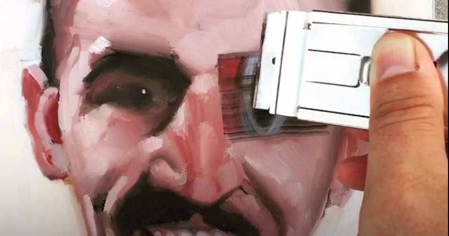 Portrætterne af den amerikanske maler, illustrator og forfatter Blake Neubert er kun overfladisk almindelige. Se, hvad der sker, når han skyder dem med en skraber. Opmærksomhed! Scenen kan chokere dig!