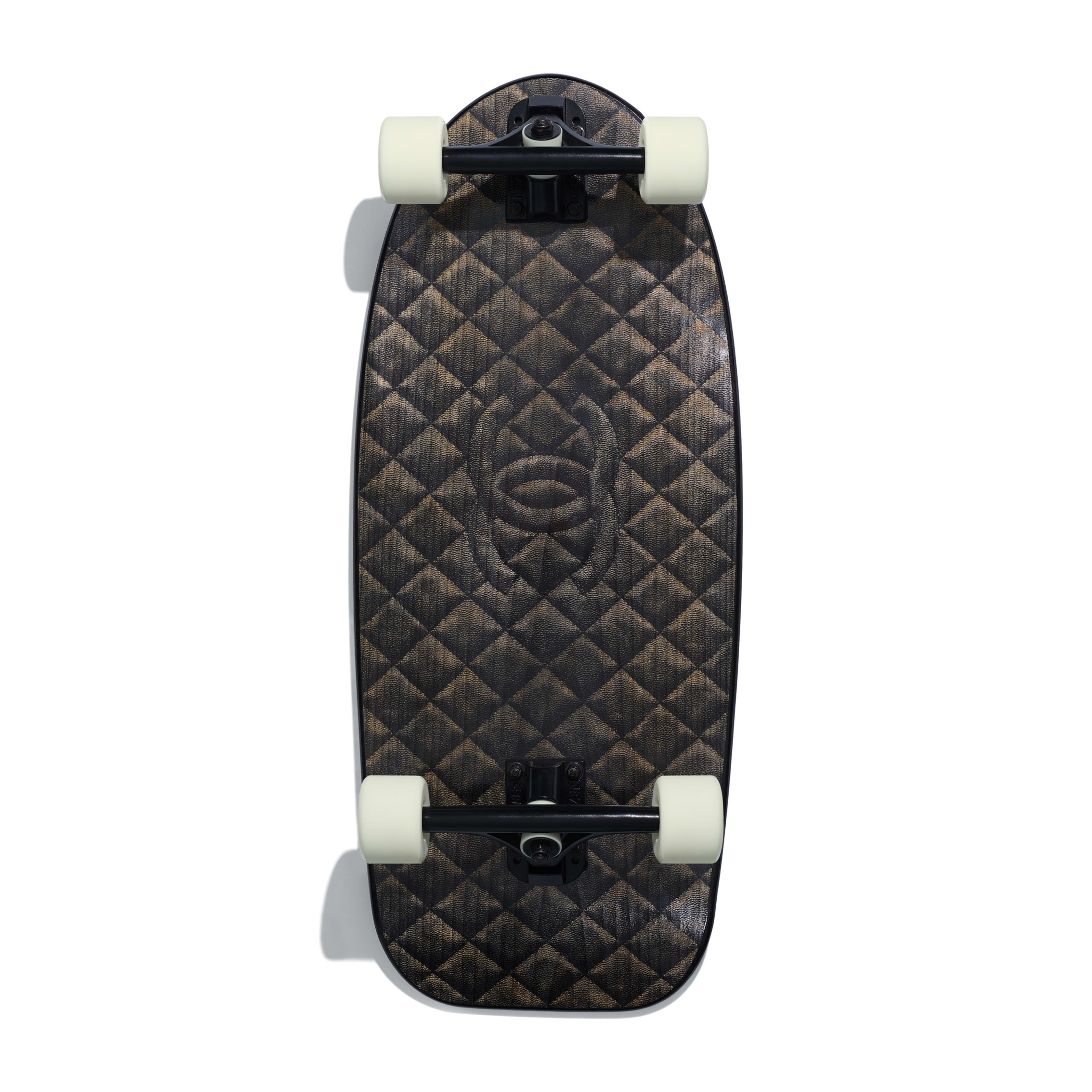Chanels skateboard er lavet af lakeret træ, den kan nemlig prale af bredt og skridsikkert bord, som skal sikre stabil kørsel. Det er indprentet i hendes hjerte dobbelt C, Chanel-modehusets genkendelige logo. Sidstnævnte findes også på undersiden af brættet, som er omgivet af et lag, der ligner quiltet stof.