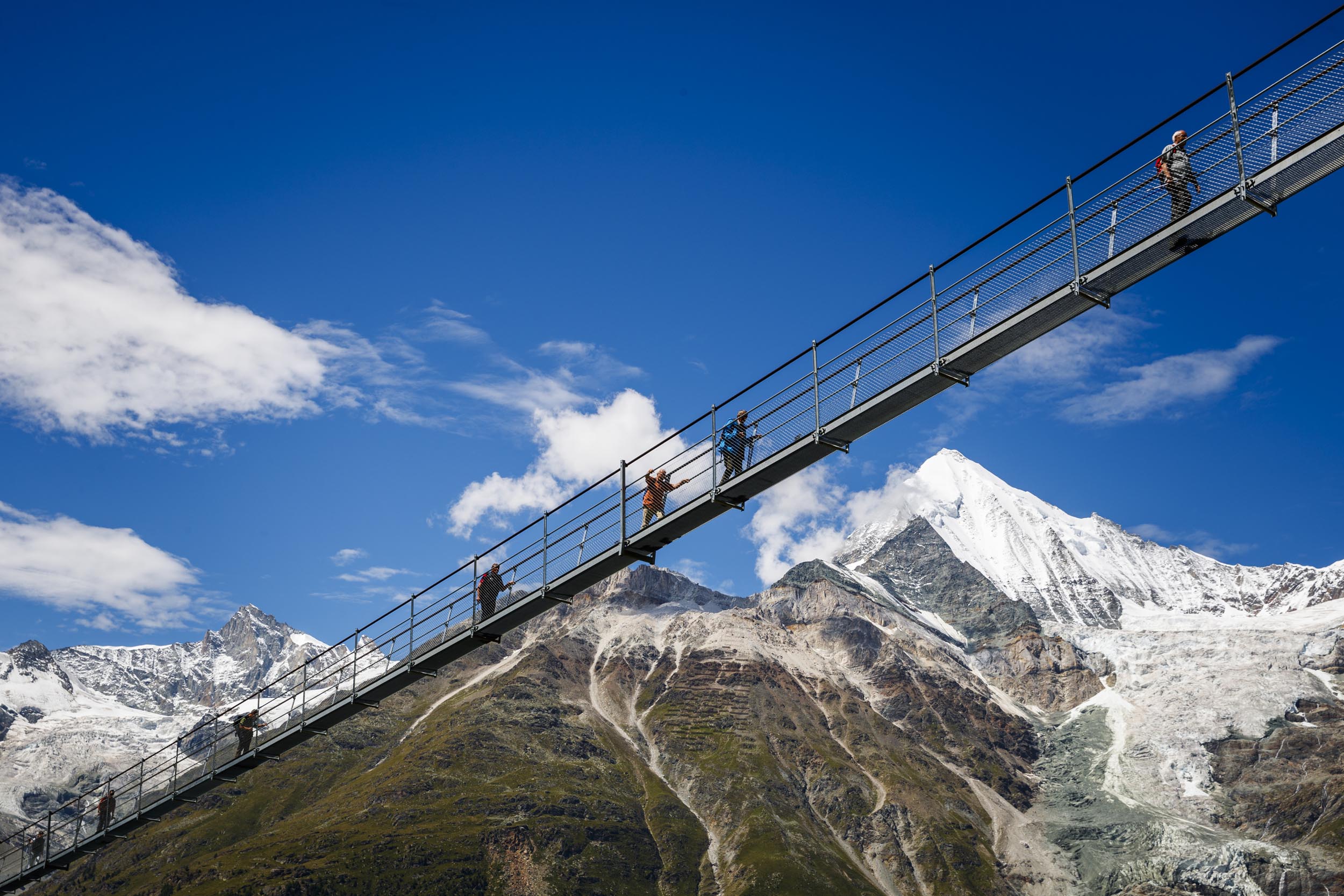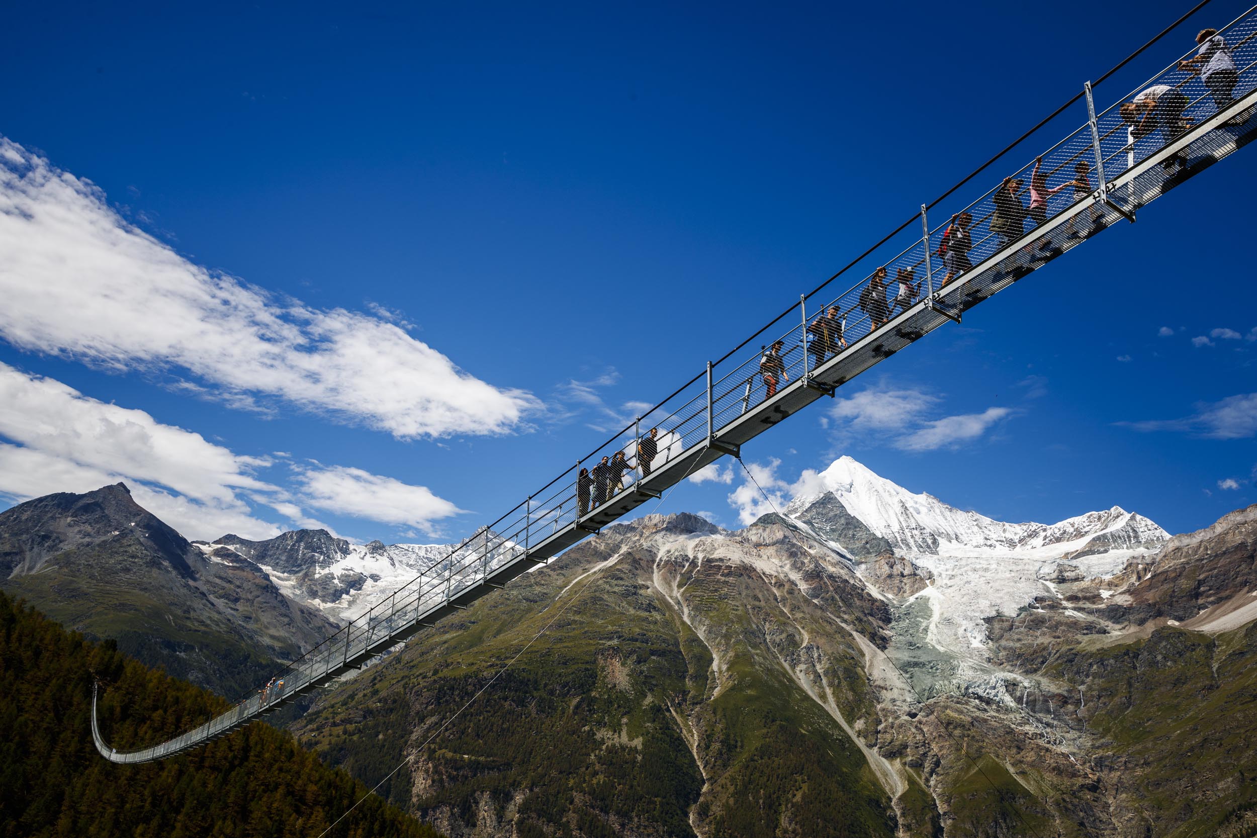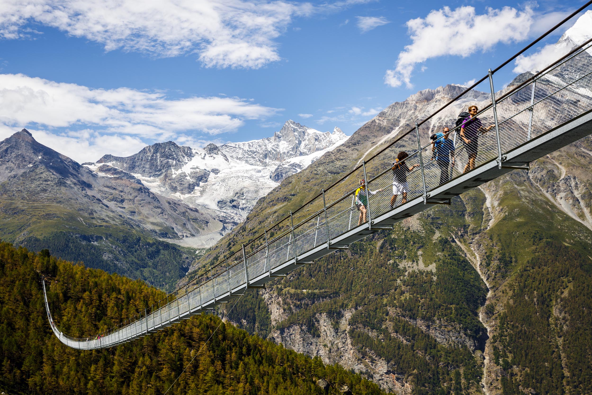Er du modig nok til at gå på verdens længste hængende fodgængerbro? Zermatt, det schweiziske turistinformationscenter, annoncerede, at den længste hængebro i verden, Charles Kuonen-hængebroen, nu er åben for vandrere, adrenalinjunkier og alle, der leder efter en fantastisk udsigt over de schweiziske alper.
