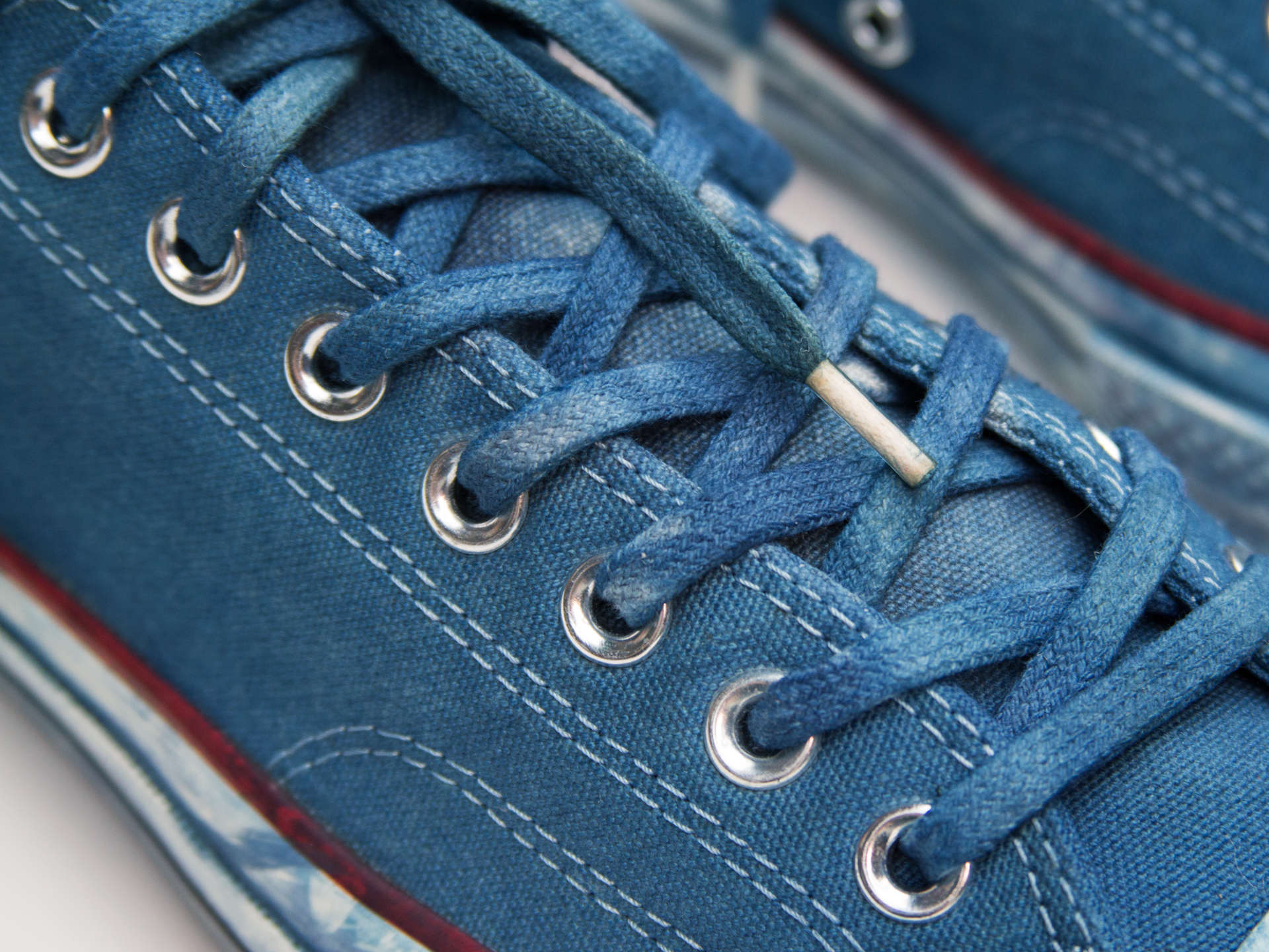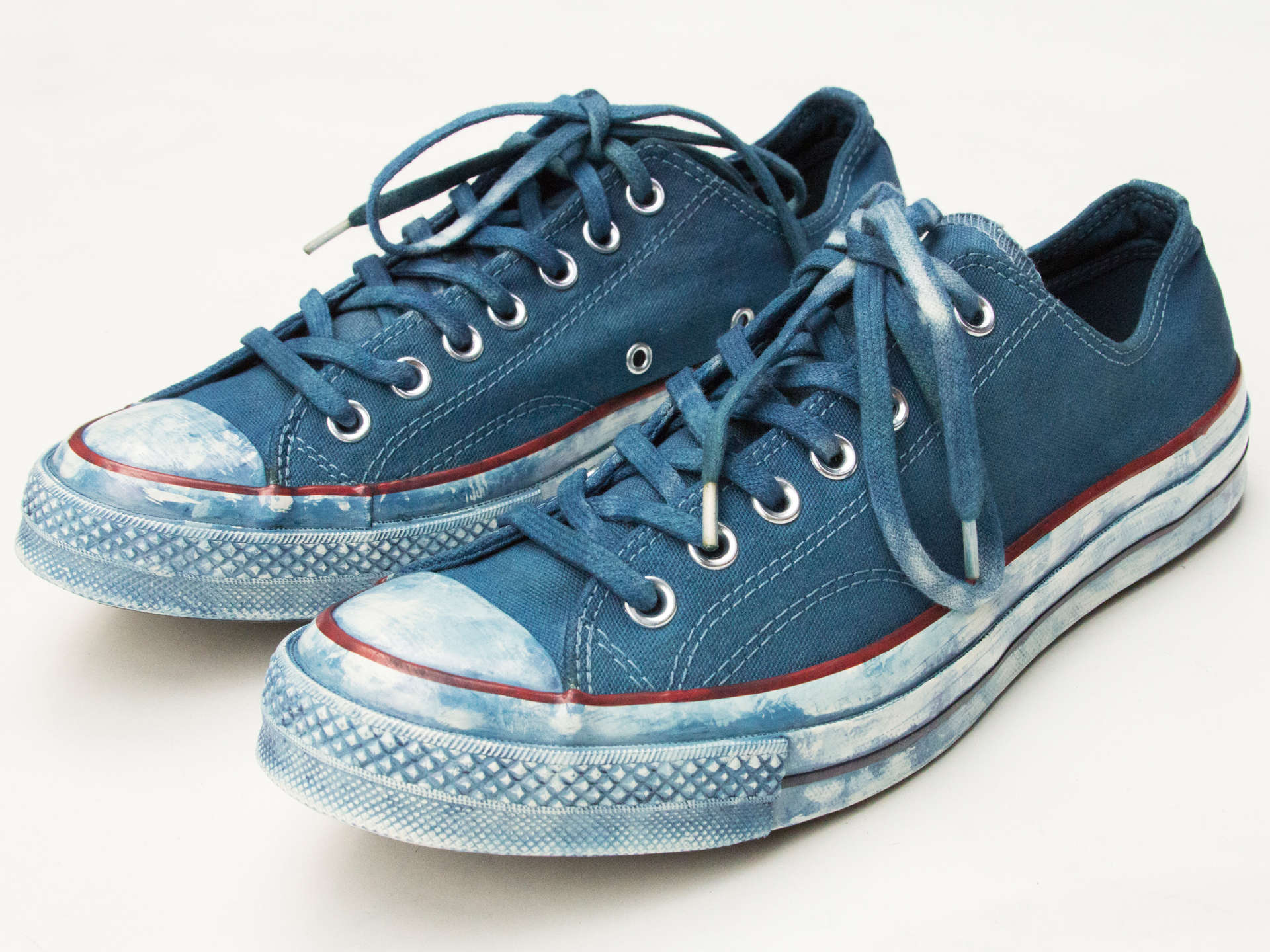 Designere Nîmes-tøj De tog 100 par sneakers fra Amsterdam og dyppede dem et efter et i naturligt indigofarvestof. Unikke blev skabt nye Indigo Chuck Taylor kun til piger.