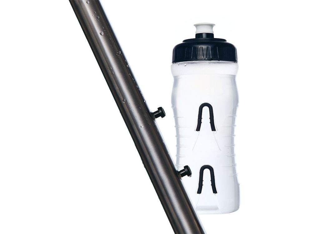 Stof er innovativ cykelflaske, hvilket på grund af den specielle metode til pinning behøver ikke en transportør. Vi ved, at du ikke vil gå glip af det på din cykel, for hvis du ikke har pengene til en carbon, er det ikke ligefrem et skønhedstilbehør. Og hvis en bærer ikke er obligatorisk, er en vandflaske endnu mere, fordi tørst er en alvorlig og farlig ting. I hullerne på rammen, hvor beslaget er fastgjort med skruer, indsætter vi i dette tilfælde to små 1,5 gram pin, som er kompatible med rillen i flasken. Og det er alt videnskab.