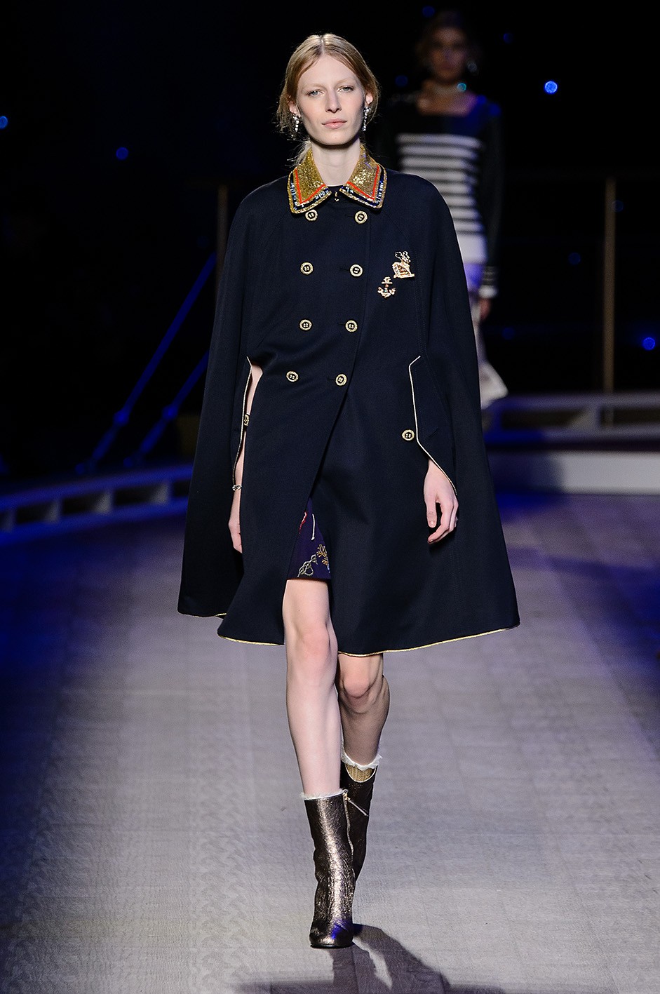 Til efterår og vinter er tungere, mere behagelige stoffer pyntet med dikkedarer, såsom denne strikkede Gucci-kappe.