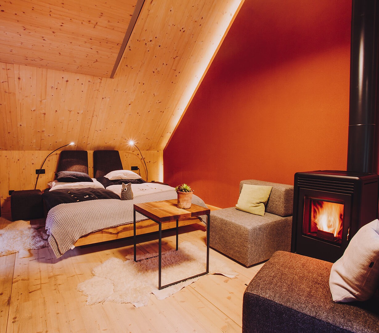 Det er himlen fire sommerhuse for to, fanget på en udsigtsterrasse mellem himmel og jord. Et privilegium for fire par, næsten tusind meter over havets overflade, med udsigt til toppene i de julianske alper, Triglav National Park og smaragdgrønne Soča i dalen. Frem for alt byder himlen på fredens luksus. Intimt midt i naturen. Hvor de eneste naboer er fire par hjorte. Hvor store glasvægge giver følelsen af, at du er udenfor, at du svæver mellem himmel og jord, at du er en del af de mægtige bjerge. Det er som at sidde på en sofa midt i den vilde natur: grøn om sommeren, bjergblomsterfarver om foråret, gyldne kobbernuancer om efteråret og hvidhed om vinteren. Det er også værd at bemærke, at Himlen også vandt Travelife Gold miljøcertifikat.