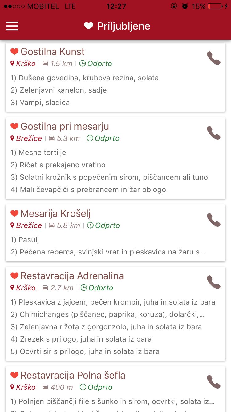 Når lokationsoplysninger er slået til, viser den dig de nærmeste udbydere, og ved hjælp af navigation og aktiveret lokation fører den dig også til den ønskede adresse. Applikationen er gennemsigtig og nem at brugeDet tillader også filtrering efter tilbudstype eller dine ønsker, og du kan oprette en liste over foretrukne udbydere og få den korteste adgang til aktuelle oplysningerListen omfatter over to tusind udbydere fra hele Slovenien. Den er tilgængelig for mobile enheder med operativsystemet iOS og Android.
