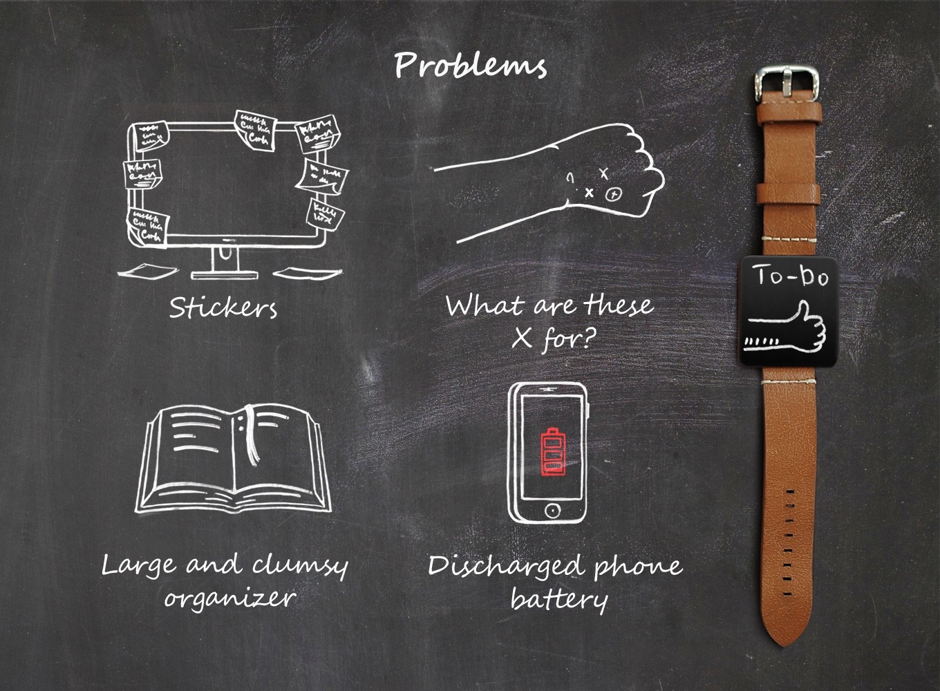 Tilbage til rødderne. Det er det budskab, som To-Do-uret, hvilket ikke er det, sender til verden gennem en Kickstarter-kampagne. Selvom dens form fuldstændig efterligner et armbåndsur, er dens "skive" faktisk bare en overflade, hvor du kan skrive vigtige ting ned ved hjælp af en flydende kridtmarkør. Ting du skal gøre, men du kan bare tilfredsstille din kreativitet og trække noget på den. I en tidsalder med smarture og telefoner virker det nemmere at skrive ting ned end nogensinde, men teknologien kan ikke altid stole på, og et ark papir er ikke altid lige ved hånden. Derfor er To-Do et ideelt værktøj selv i det 21. århundrede.