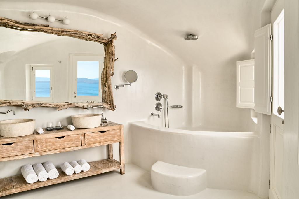 Selvom det virkelig ikke er svært at finde en flot udsigt på Santorini, gør det det Mystik en af de mest "instagramable" udsigter, takket være udsigtspunktet på kanten af calderaen i den sydligste del af Oia. Gæsterne kan fordybe sig i overløbsbassin, med udsigt over dramatiske vulkanske klipper og det glitrende sydlige Ægæiske Hav. Værelserne er rummelige "hugget" direkte ind i klinten og har private terrasser med havudsigt. Højdepunktet er poolbaren med dens cocktails, der matcher solnedgangen, som simpelthen tager pusten fra dig.