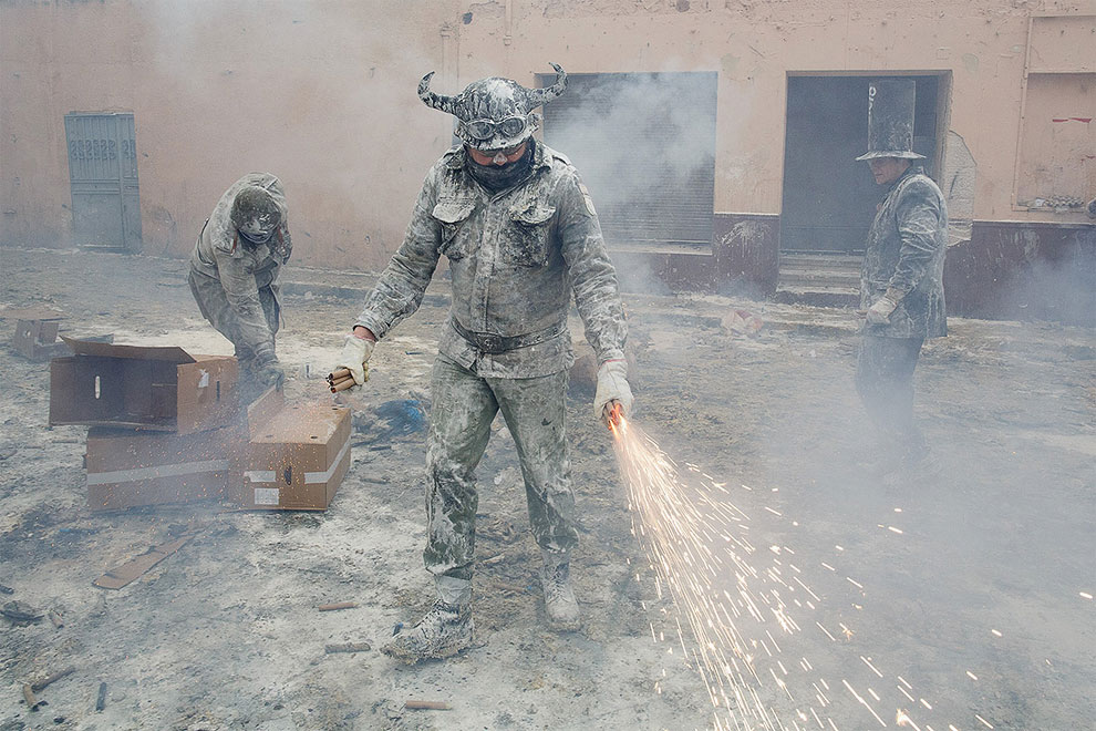 I vores land tager maskerne traditionelt over i karnevalssæsonen, mens i Spanien tager militæruniformer over den 28. december. Nej, det er ikke et kup. På denne dag bliver indbyggerne i den spanske by Ibi traditionelt 'fyret' med mel, æg, pulver fra ildslukkere og fyrværkeri, og allerede før det klokken otte om morgenen overtager de symbolsk byens magt. En mere end 200 år gammel tradition går under navnet Els Enfarinats. Se utrolige scener fra årets festival, som endnu en gang gjorde byen til en rigtig slagmark.