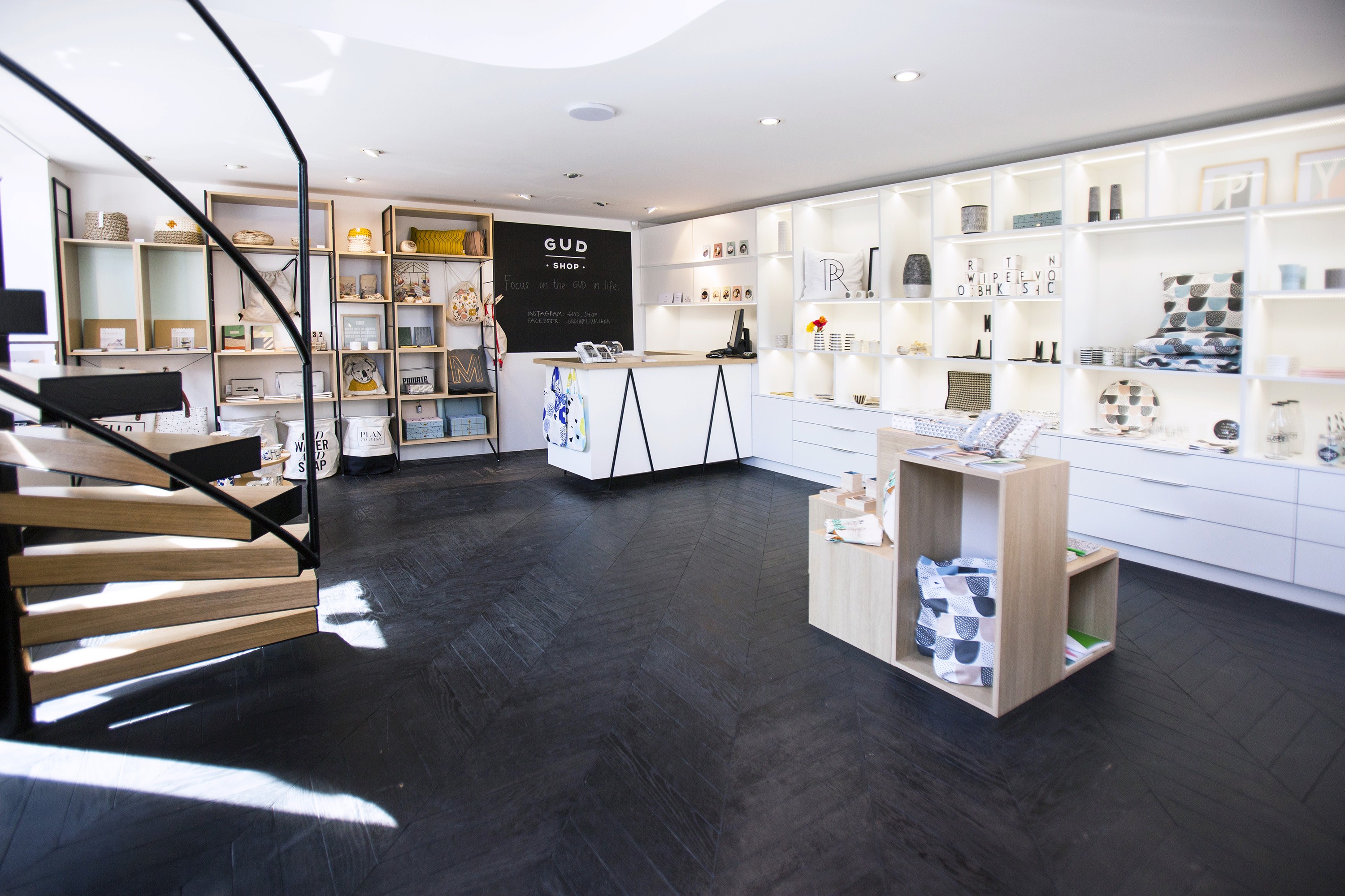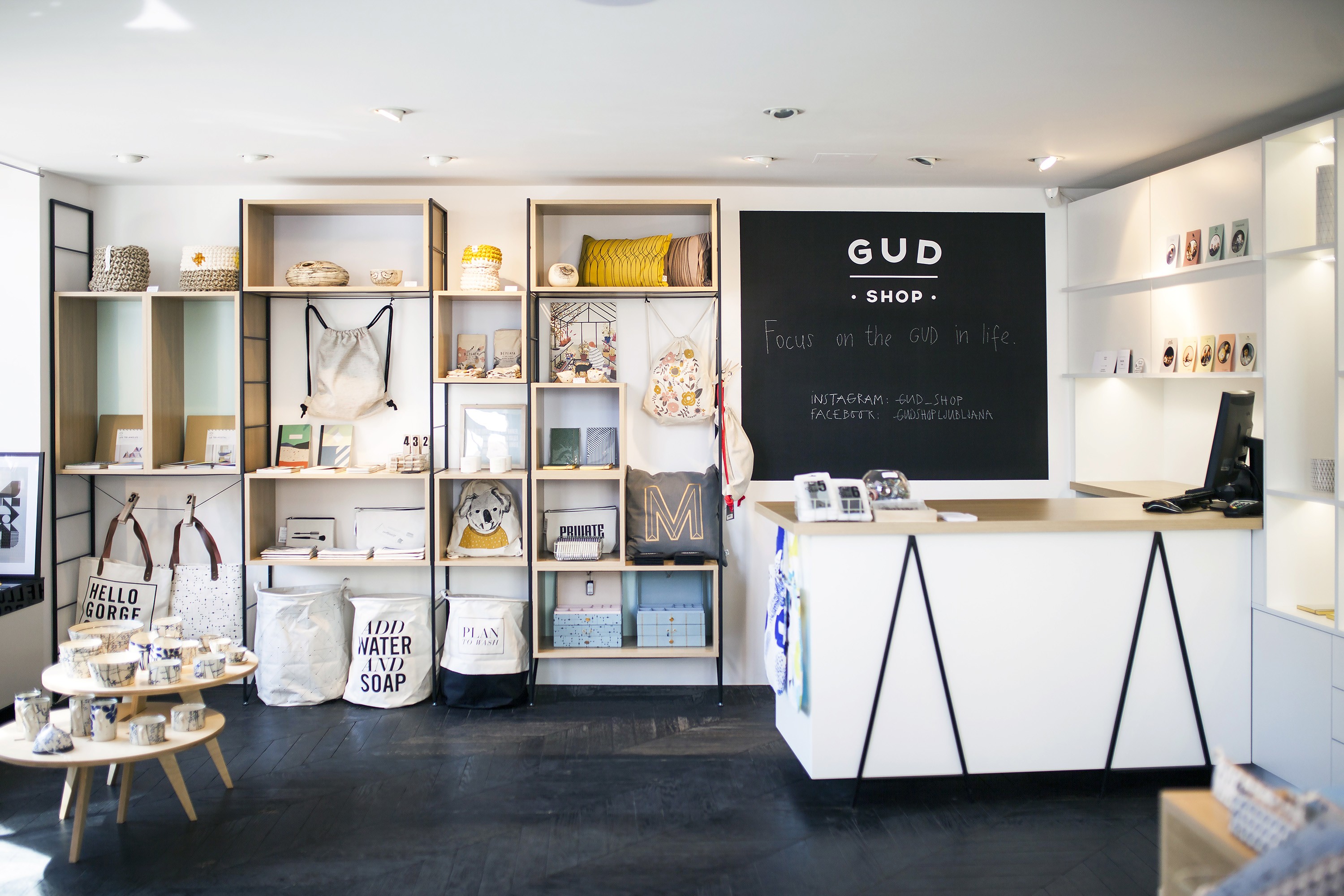 Kærligheden til design fik det unge team til at åbne Gud shop, en moderne konceptbutik, hvor vi på hylderne finder kreative produkter af designere fra mange europæiske lande - Danmark, Norge, Sverige, Holland, Frankrig, Spanien og vigtigst af alt, også fra Slovenien.