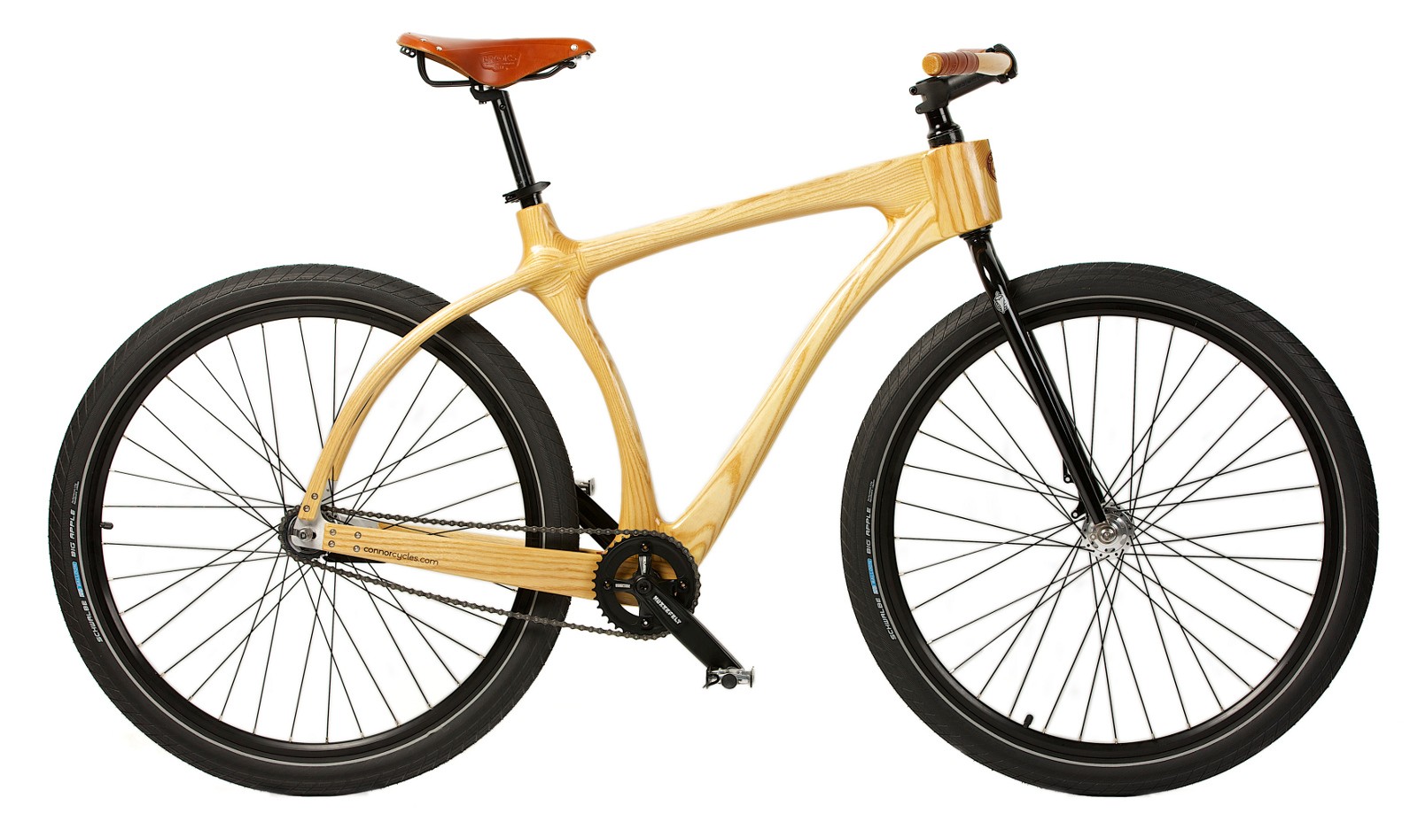 Connor Woody han lavede dette smukke træcykel, som de ønsker 3500 amerikanske dollars for. De brugte kun det bedste amerikanske træ, mens resten af delene er lavet af let og holdbart kulfiber. Den håndlavede konstruktion gør det endnu mere specielt og unikt at køre på den.