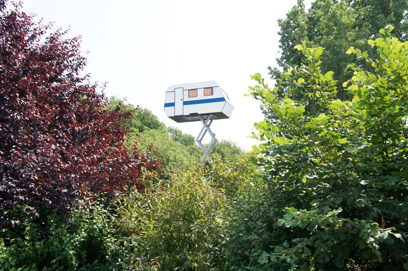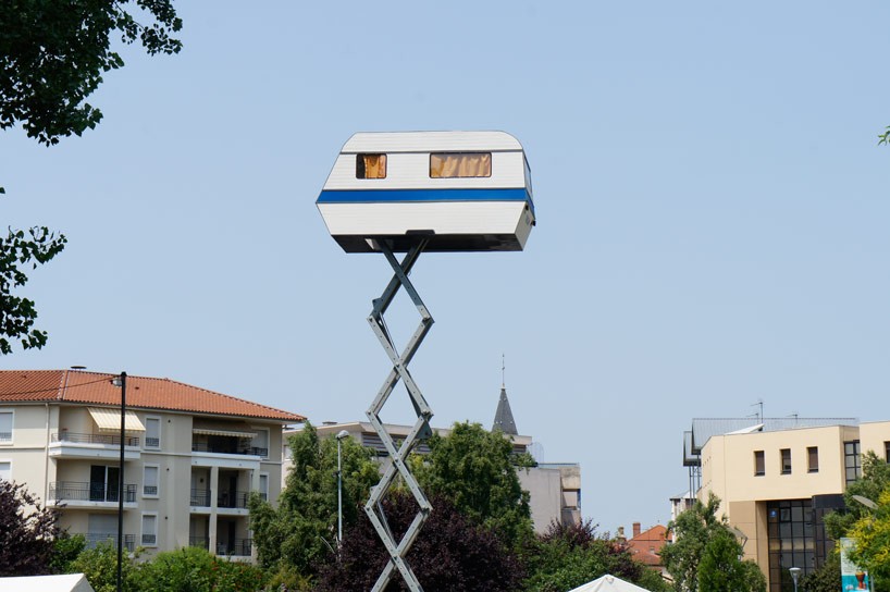 Den franske kunstner Benedetto Bufalino kan lide at indføre humor i sine urbane interventioner, hvilket han også fulgte op på med sit seneste projekt med titlen "La Caravane Dans Le Ciel" (Karavanen i himlen).