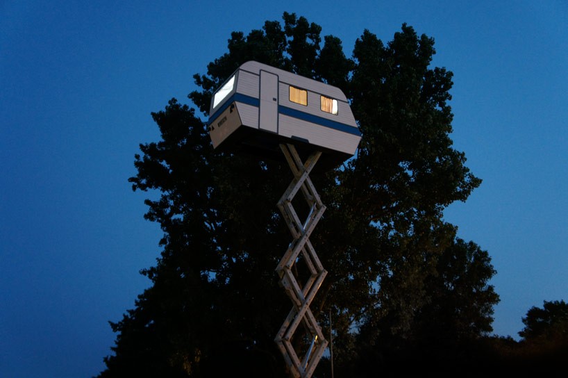 Han udforskede ideen om en flyvende trailer et sted højt oppe i skyerne, så han ville præsentere sin idé om en trailer, der stiger mod skyerne. Med en humoristisk tilgang afsluttede han projektet med en trailer, der var fastgjort til en hydraulisk lift, som langsomt stiger op i himlen.