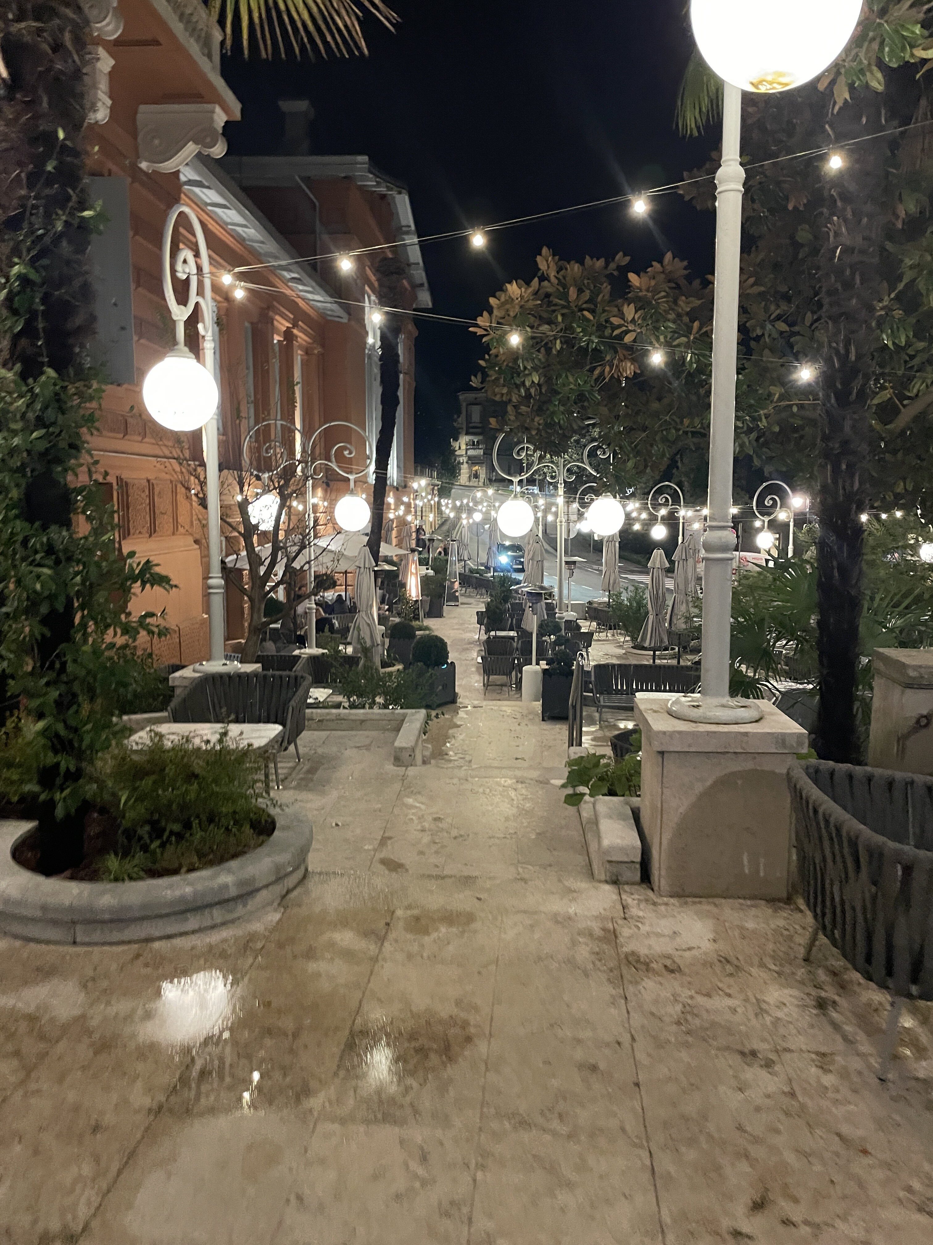 Da flere kilometers vandring langs Lungomare trætte os, valgte vi Cafe Strauss, som ligger i hjertet af byen, til vores hvile og forfriskning. Cafe Strauss, som er en del af kæden Liburnia hoteller og villaer, tilbyder en unik kombination af traditionel elegance og moderne komfort. Med et interiør, der afspejler Opatijas rige historie og kultur, er cafeen et ideelt sted at slappe af og nyde udvalgte delikatesser. Udbuddet er virkelig varieret og vi behøvede bestemt ikke at modstå lørdagsbrunchen. Hver bid var en fest for smagsløgene, og dette i en atmosfære, der ånder historie og elegance.