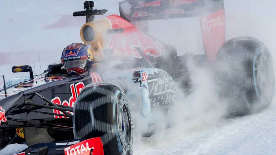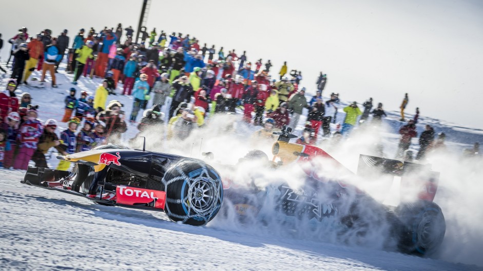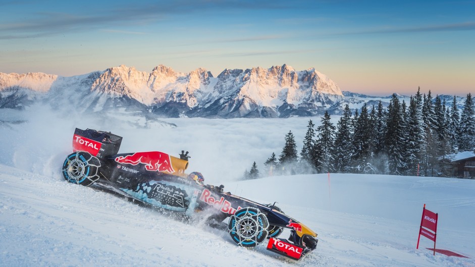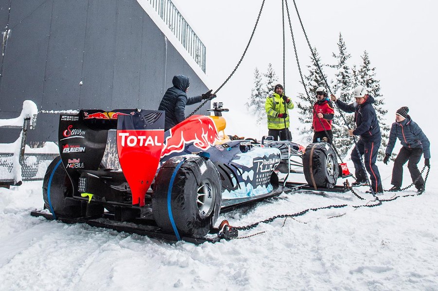 rød tyr sendte allerede sin bil til isen i 2010, hvormed holdet så fejrede det canadiske Grand Prix' tilbagevenden til F1-kalenderen, men denne gang forberedte han sig også et show for gourmands. I et berømt skisportssted Kitzbühel under bjerget Hahnenkamm sendt en bil til skisporet Red Bull RB7 fra 2011 og udstyret med kæder for lettere manøvrering mellem portene.