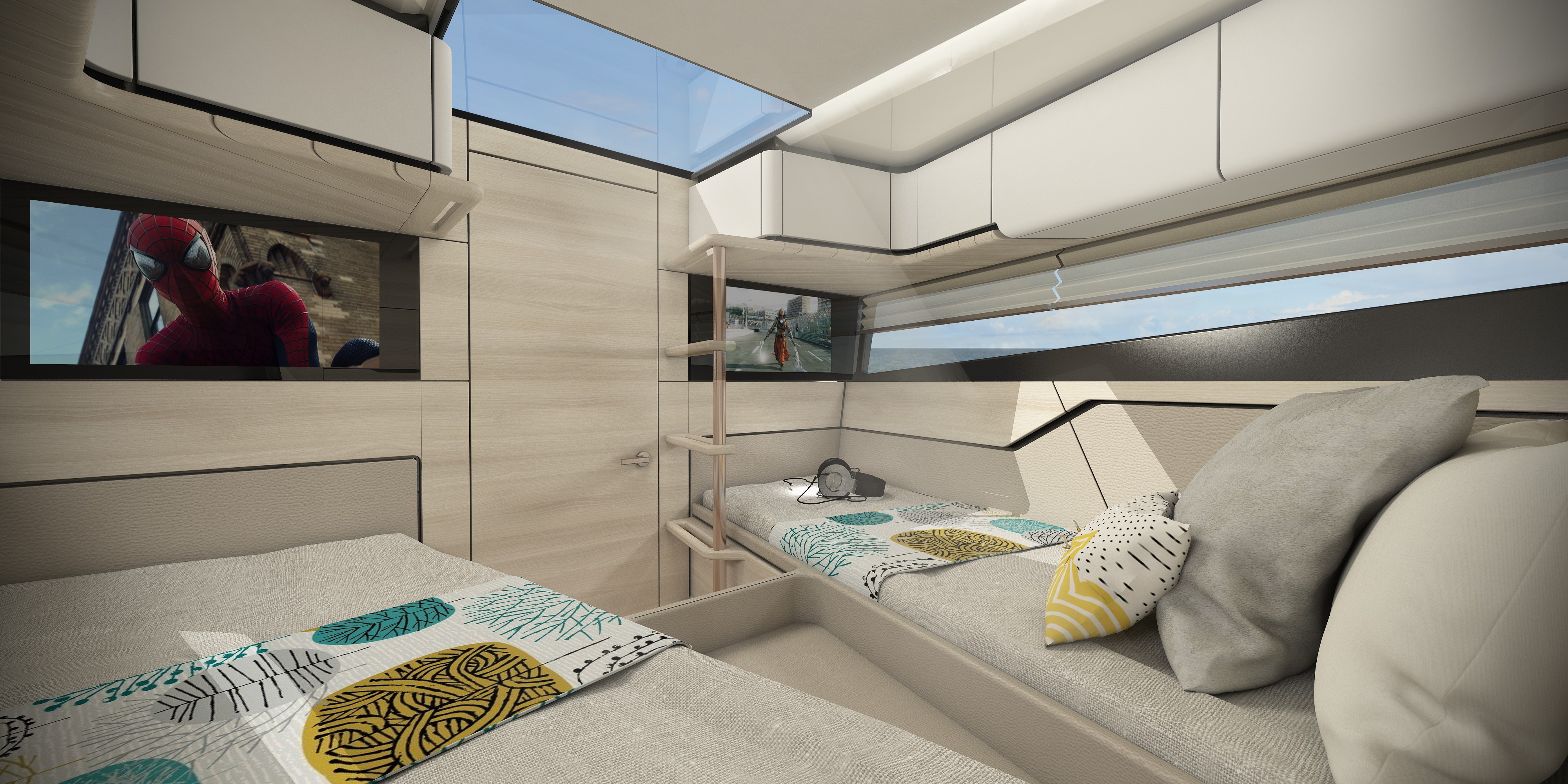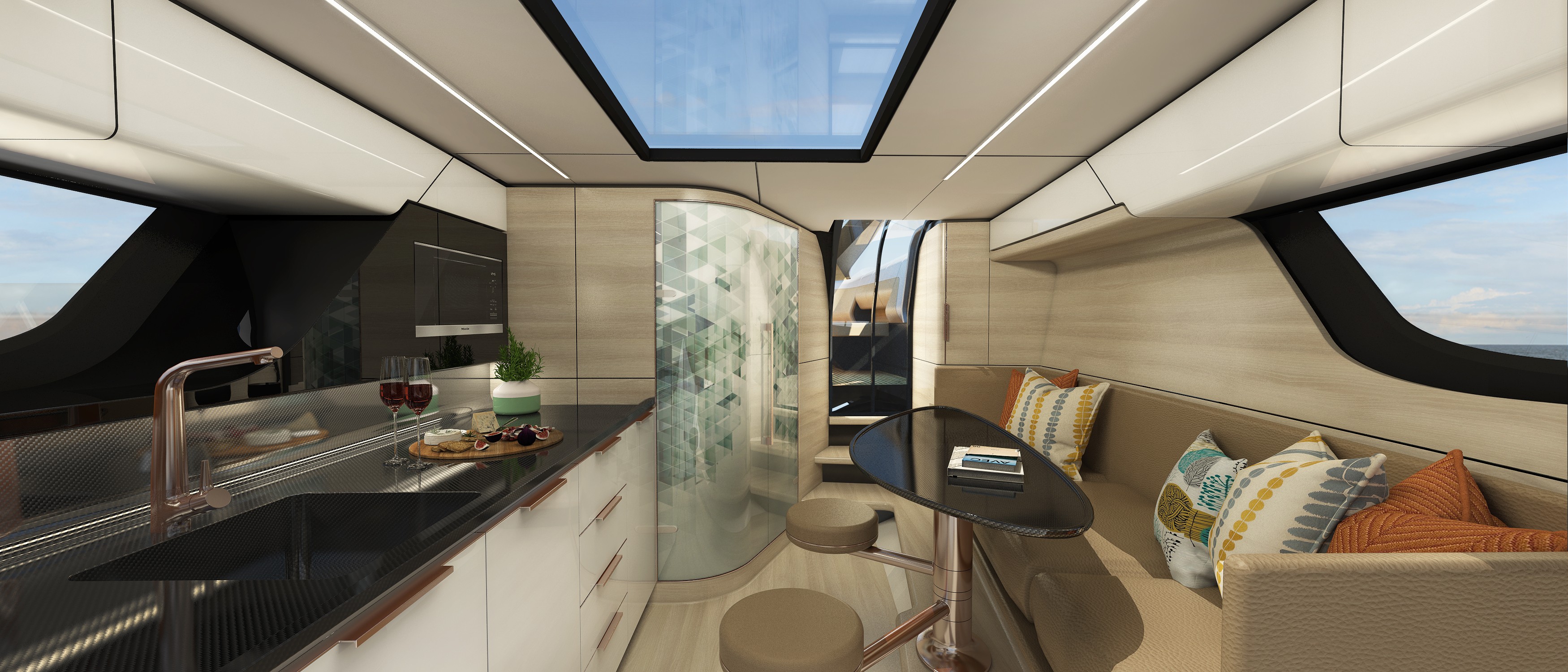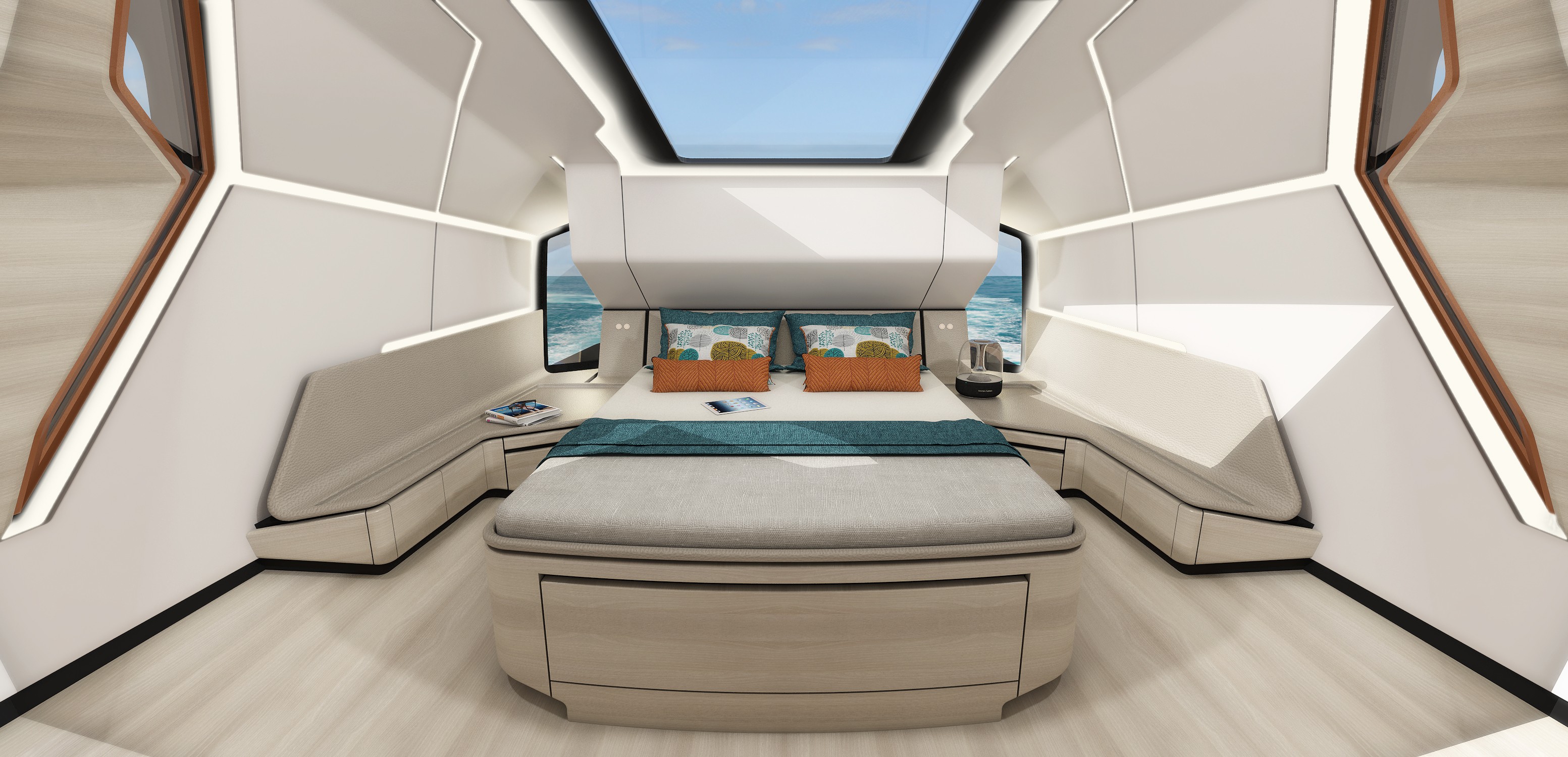 Poleg hitrosti in dizajna ima Superfly GTO 42 še socialno noto. Zamislili so si jo namreč kot center družabnega dogajanja, kjer se lahko dobivate s prijatelji, znanci ali preprosto uživate s svojo družino. 13,09-metrska jahta je prilagodljiva in ima zunanjo kuhinjo in bar prav v sredini njenega odprtega dela. Salon ponuja dovolj prostora in ima popolnoma opremljeno notranjo kuhinjo, v kateri sta pult in miza narejena iz karbonskih vlaken. Poleg køkken og osrednjega prostora je na voljo še soveværelse z veliko posteljo in veliko prostora za shranjevanje stvari. Zaradi večjega števila oken je notranjost svetla, kar posledično še poveča občutek rummelighed. V prostoru, kjer ima kapitan glavno besedo, najdemo udobno zofo v obliki črke U, ki se po potrebi preobrazi v posamezne sedeže, in že smo pripravljeni na hitro morsko pustolovščino.