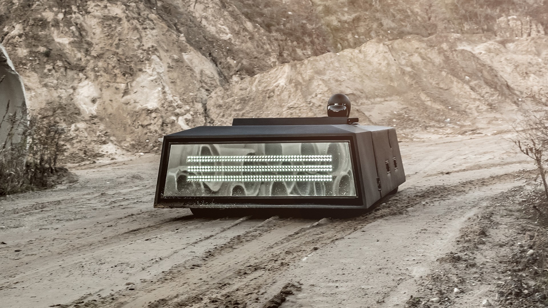 Den er ekstremt minimalistisk i designet, matsort i farven, og krænker alle mulige standarder. etablerede designpraksisser. det er trapezformet og dermed også fokus på aerodynamik.